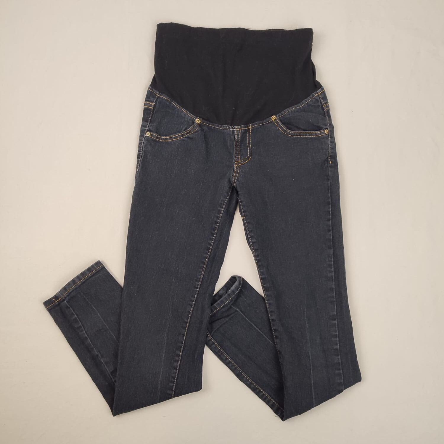 Autres commentaires : Jean skinny gris foncé de grossesse, ceinture bandeau noir souple.