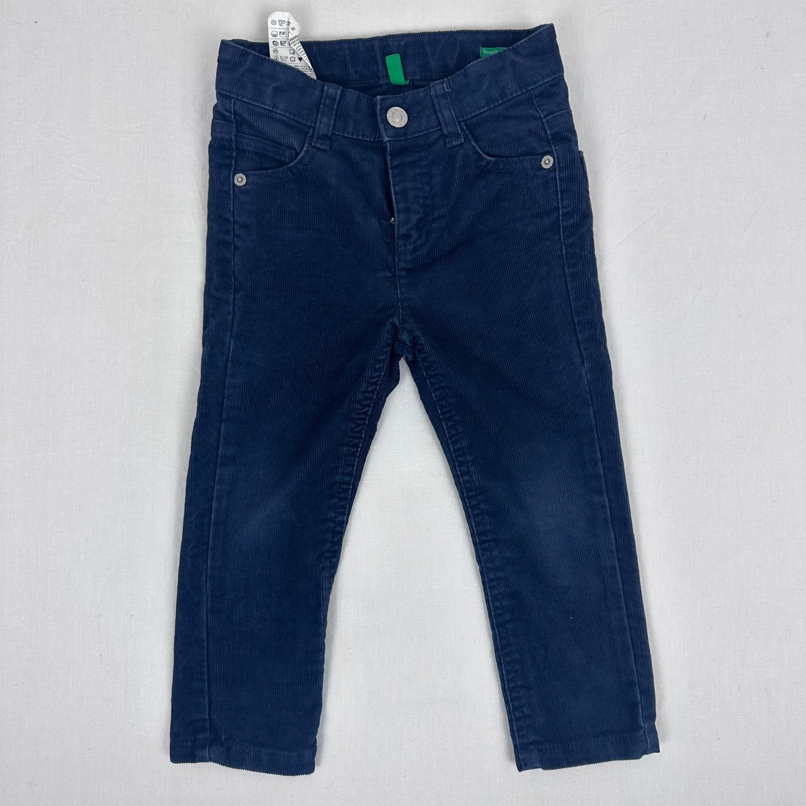 Autres commentaires : Jean bleu foncé avec taille élastiquée et ceinturée. Tissu du genoux un peu décolorée. Contient 56% polyester, 2% elasthanne et 42% coton.