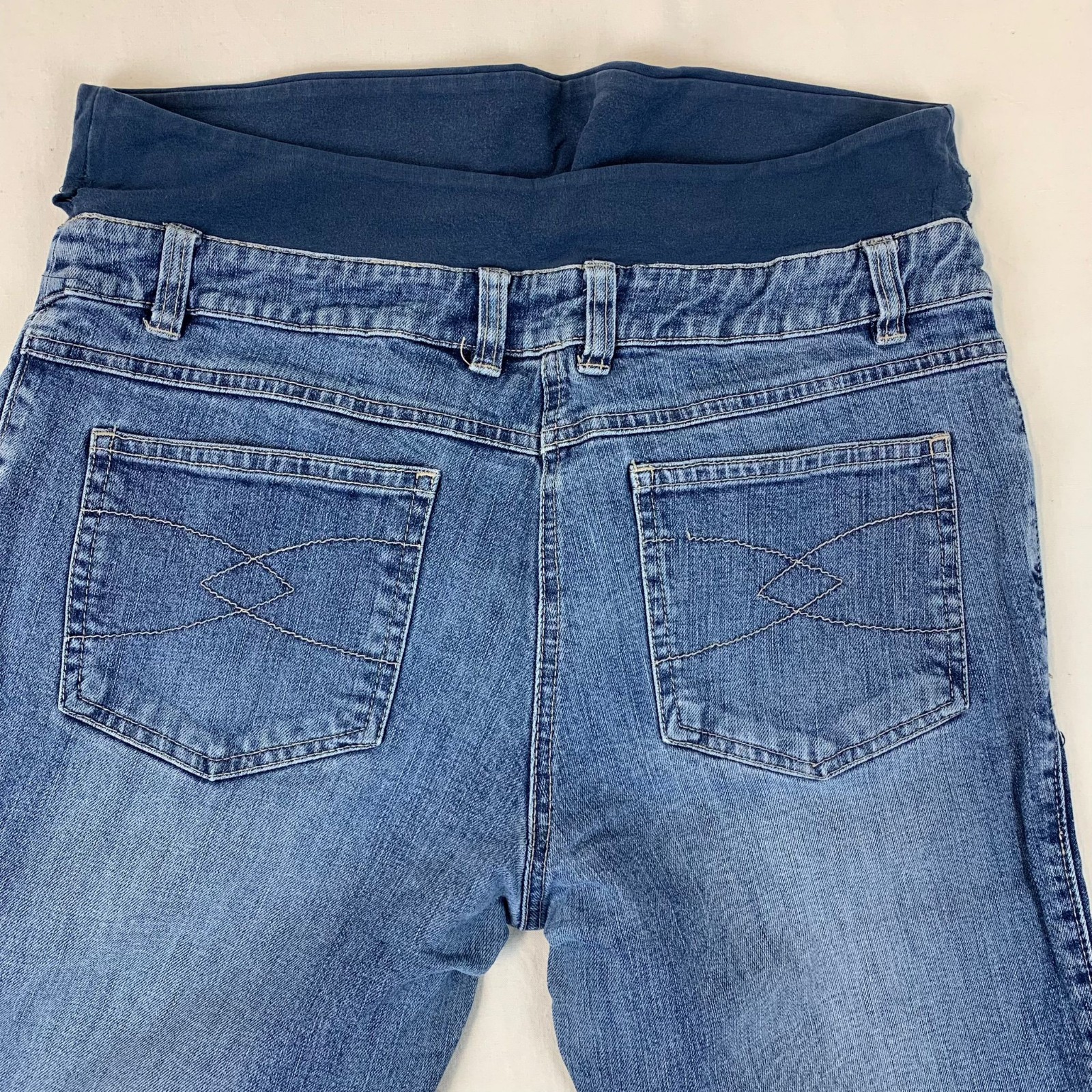 Autres commentaires : Jean en denim bleu Bandeau élastique bleu. 2 poches latérales et 2 poches arrières. Passants pour une ceinture.Contient 98% coton et 2% elasthanne.