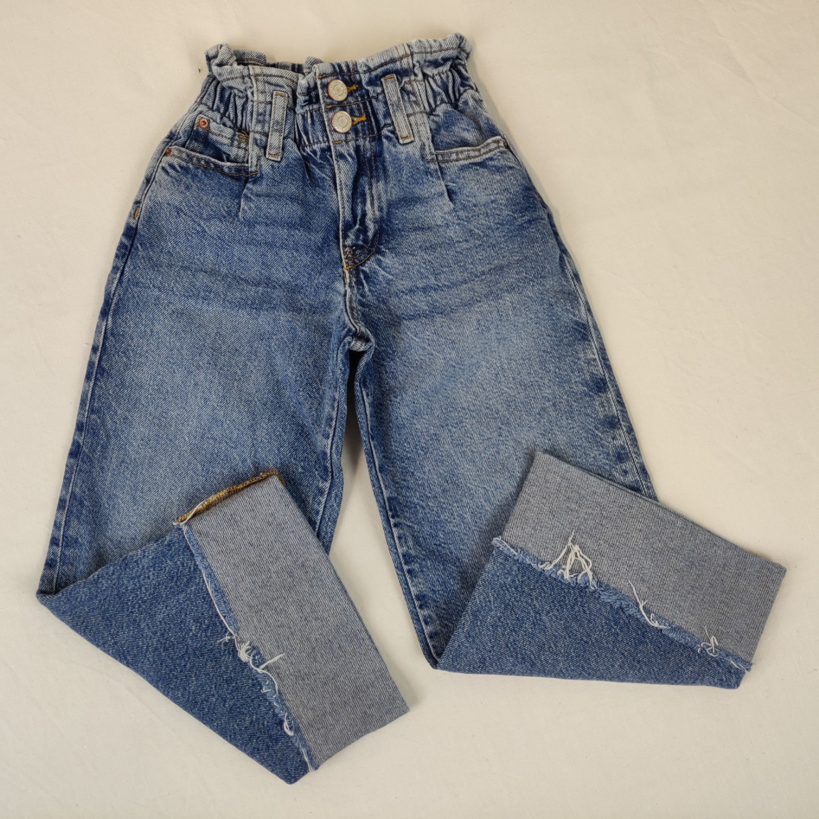 Autres commentaires : Jean bleu avec taille élastiquée.
