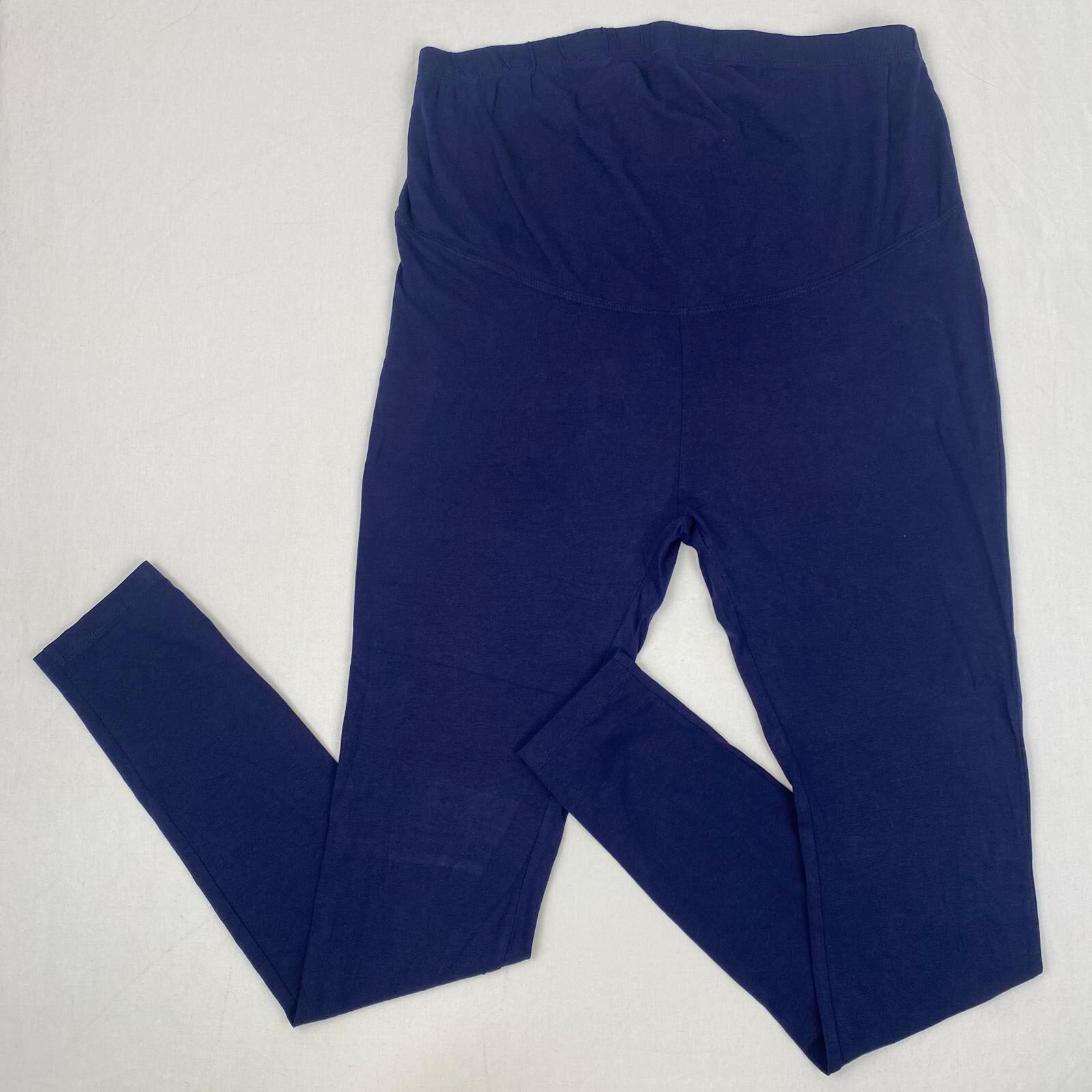Autres commentaires : 5% élasthanne. Legging bleu foncé uni, taille élastique, bandeau de grossesse.
