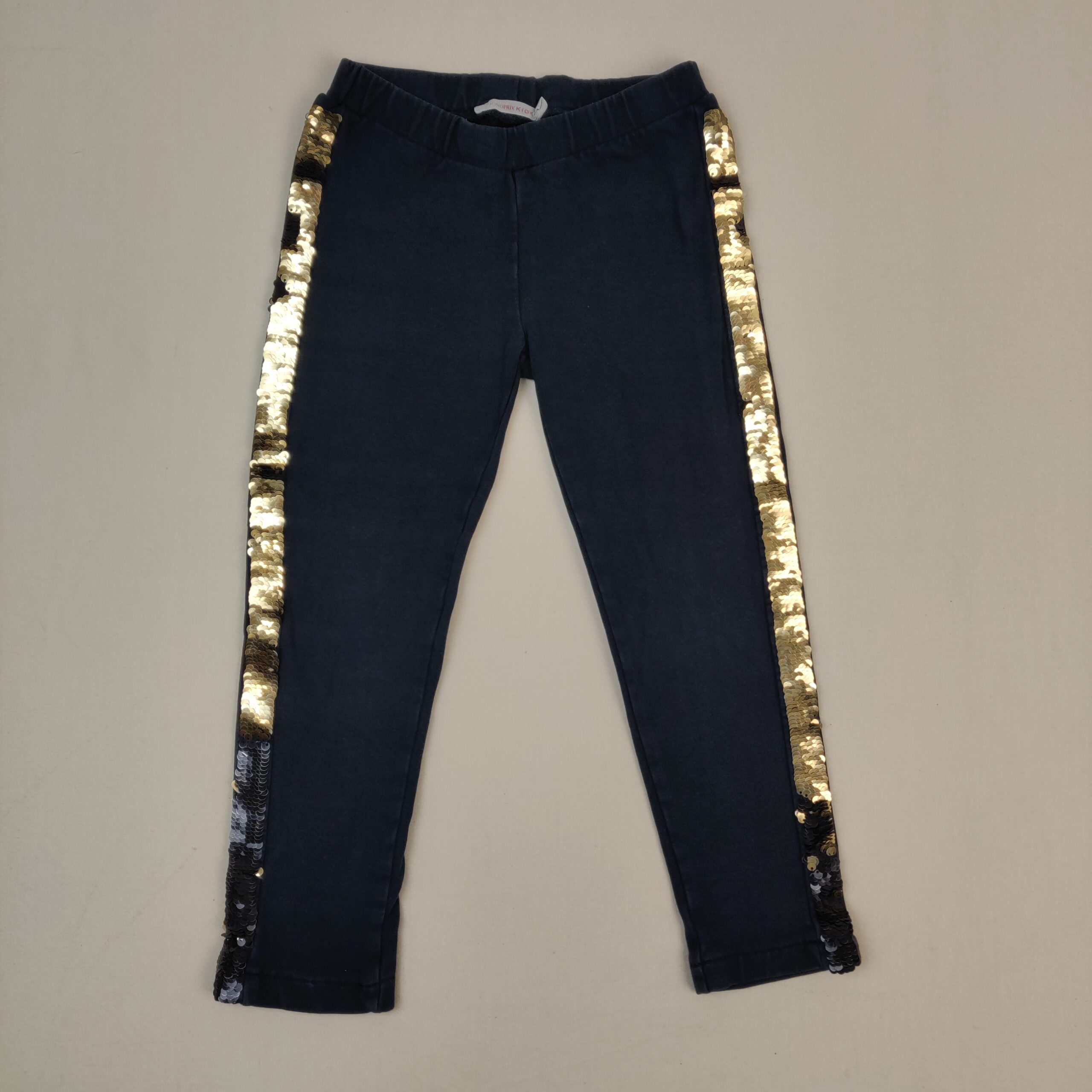 Autres commentaires : 4% élasthanne – Legging bleu marine, bandes latérales en sequins dorés et bleu nuit, taille élastiquée.