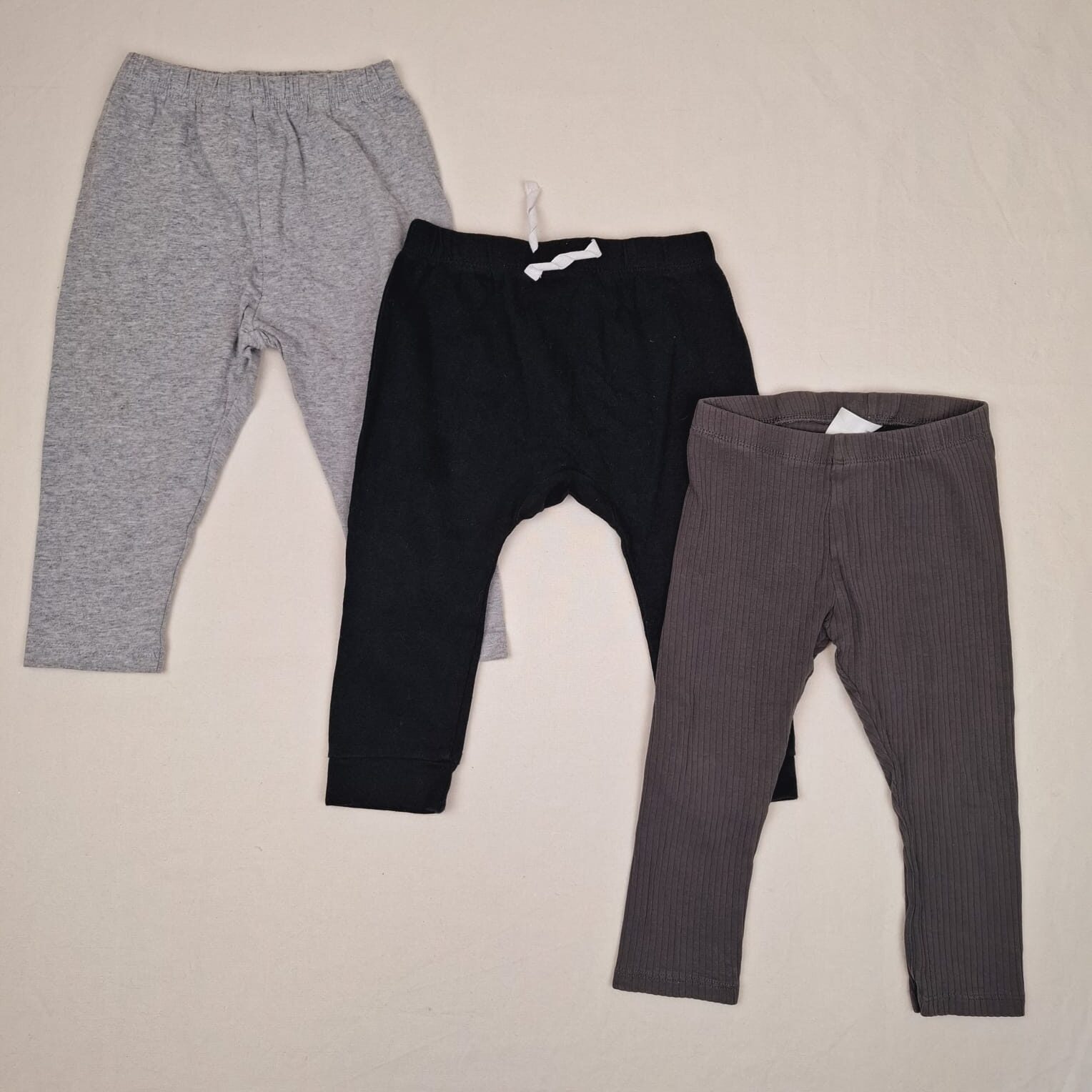 Autres commentaires : Lot de 3 leggings, taille élastique: -Noir uni SHEIN, 100% coton. -Gris uni SHEIN, 95% coton; 5% élasthanne. Gris foncé uni côtelé H&M, 95% coton; 5% élasthanne.