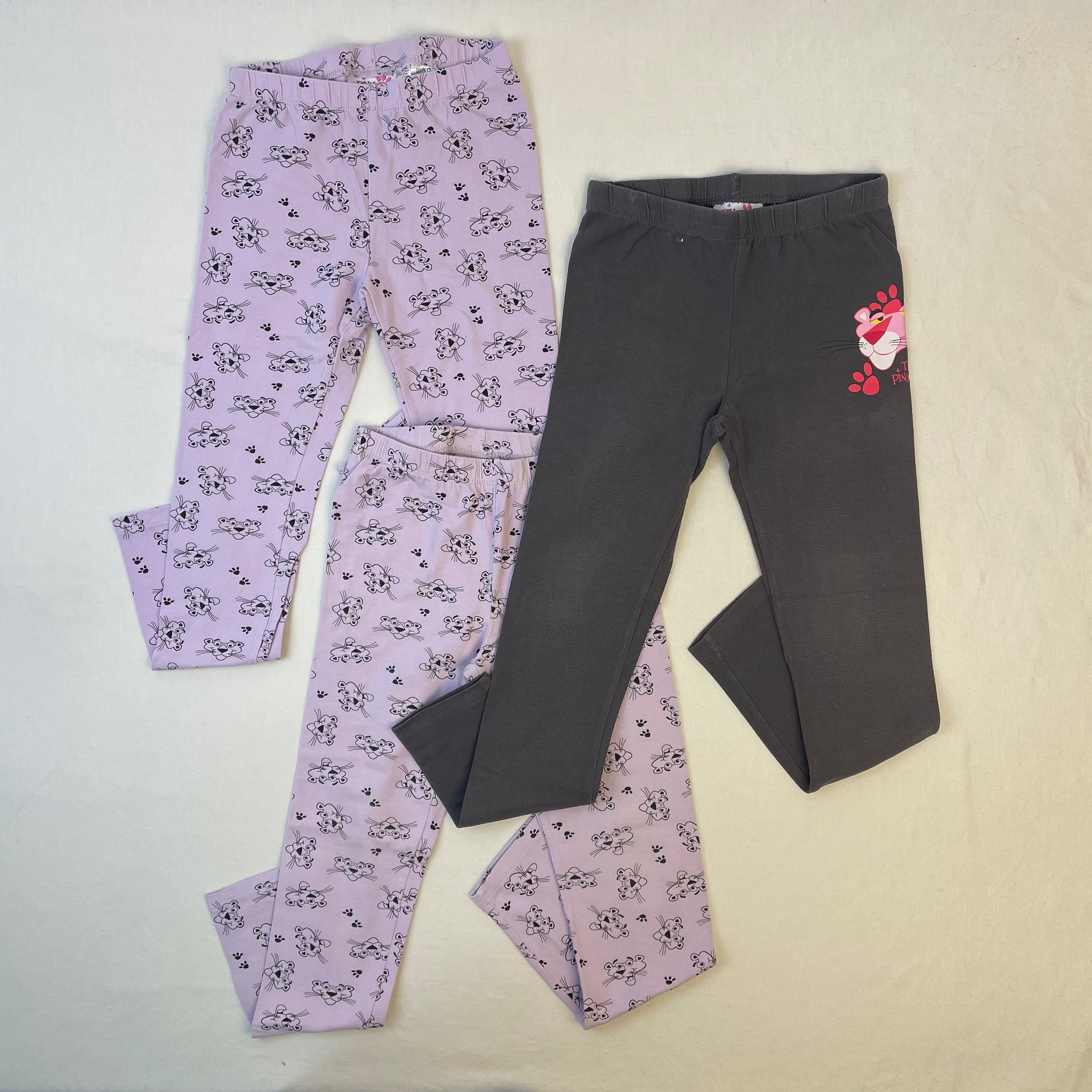- Lot de 3 leggings, 2 mauves et un gris. Un est légèrement usé au niveau du postérieur
