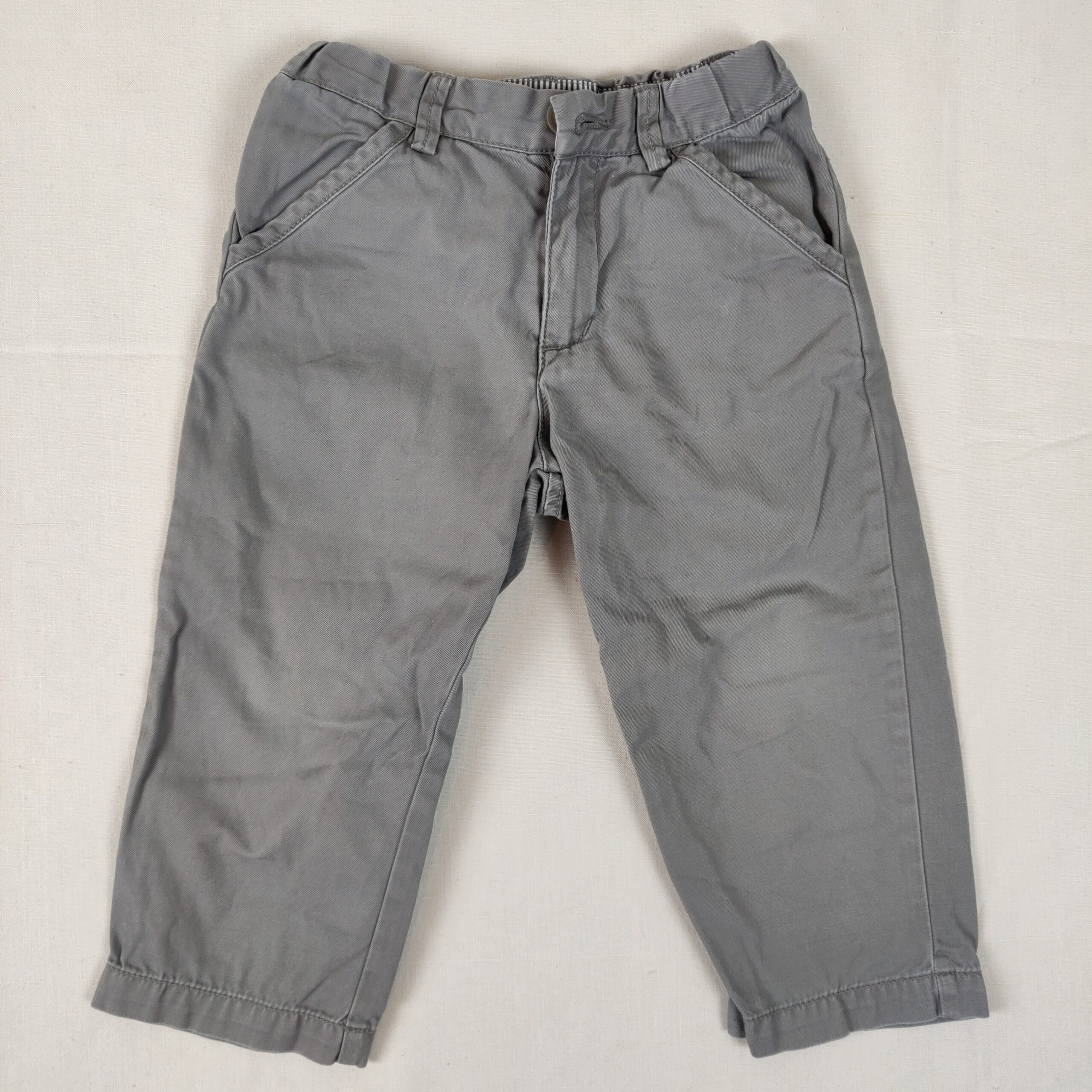 Autres commentaires : Pantalon gris coupe droite, ceinture intérieure réglable, bouton à la taille et fermeture éclair. Deux poches latérales et deux au dos.