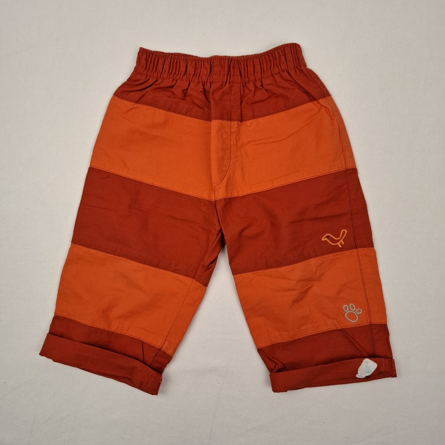 Autres commentaires : Pantalon rayé orange et orange foncé, taille élastique.