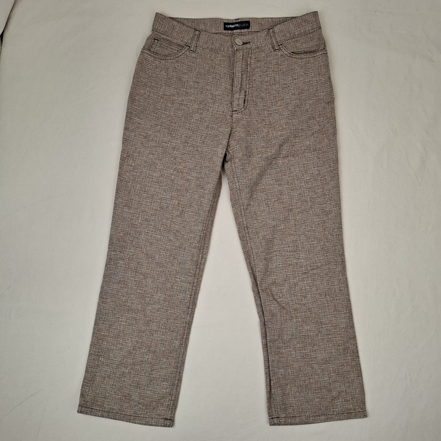 Autres commentaires : 40% coton. Pantalon marron large, fermeture par bouton et zip.