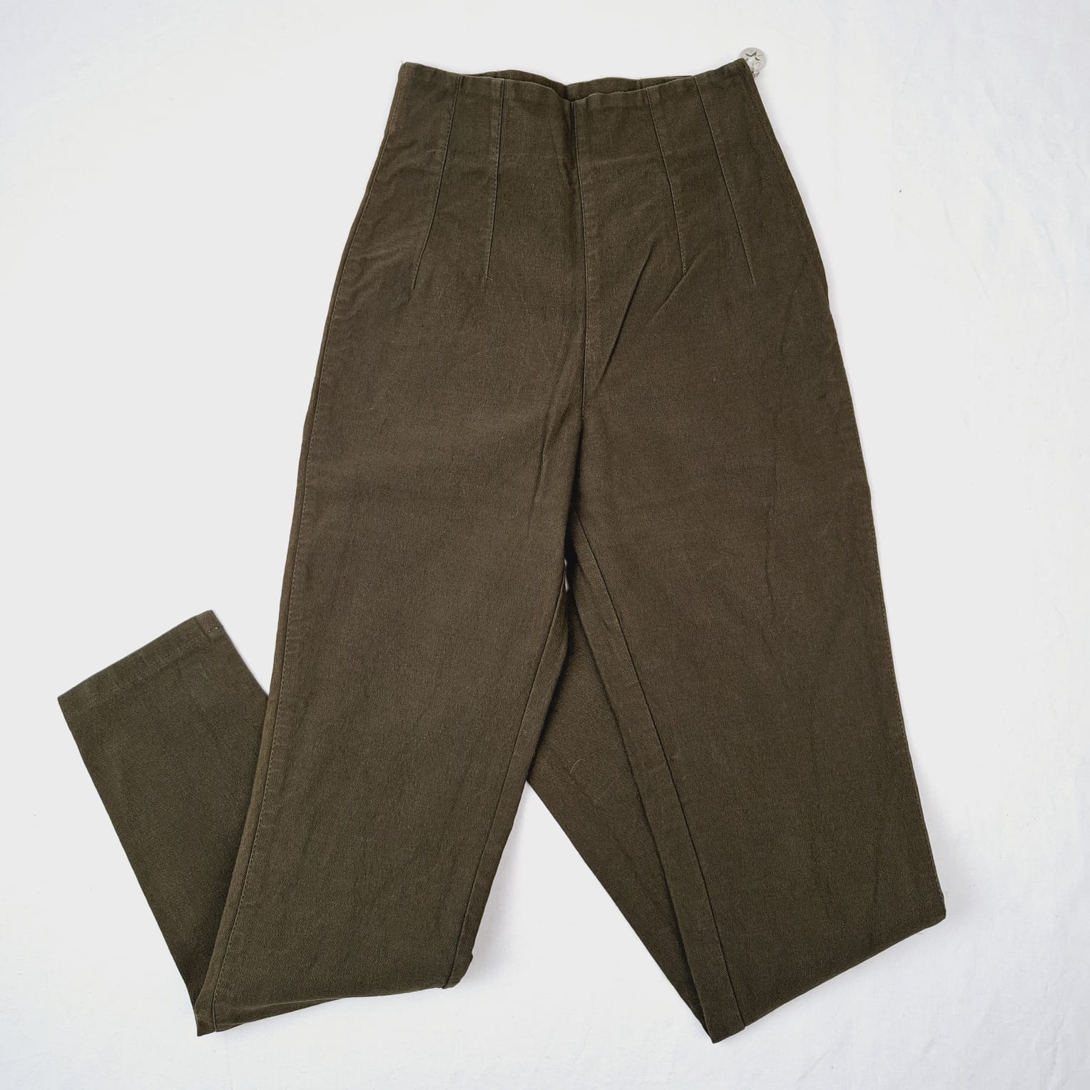 Autres commentaires : 3% lycra. Pantalon carrot kaki, fermeture par zip sur le côte gauche.