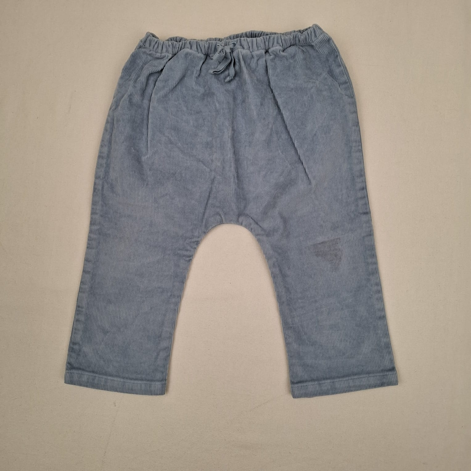 Autres commentaires : 2% élasthanne. Pantalon en velours côtelé bleu glacier, taille élastiquée.