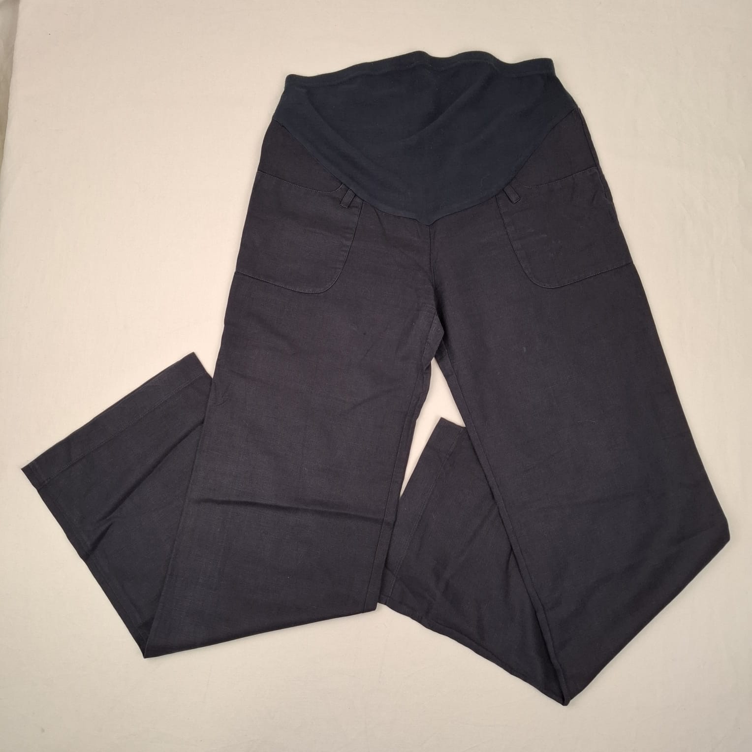 Autres commentaires : 48% coton. Pantalon large bleu marine, bandeau élastiquée en 10% élasthanne et 90% acrylique.