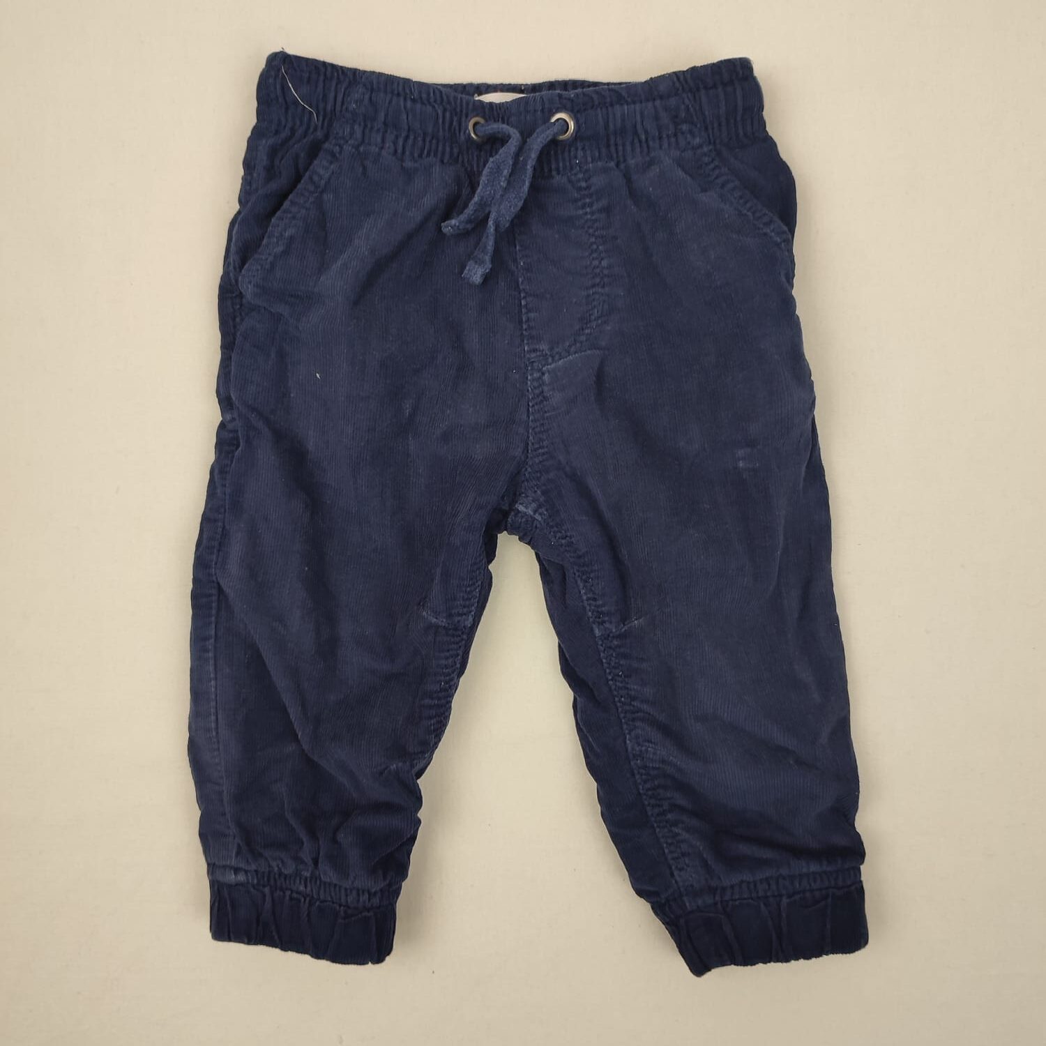 Autres commentaires : Pantalon bleu foncé en velours côtelé, doublure coton, ceinture élastiquée avec lanières de serrage.