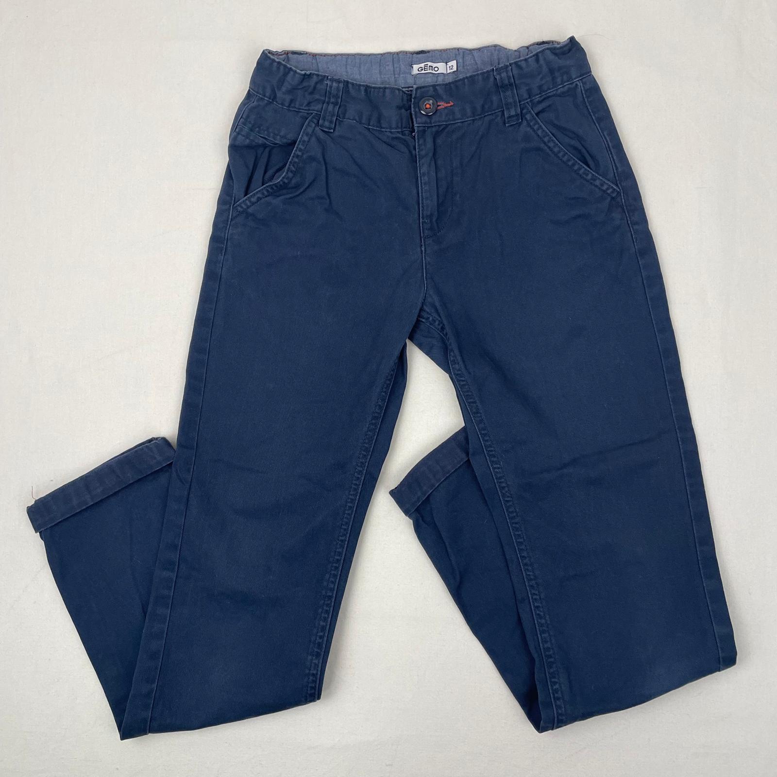 Autres commentaires : Pantalon bleu marine. Taille élastiquée réglable. Une fausse poche à l’arrière. Ourlet cousu en bas de la jambe.