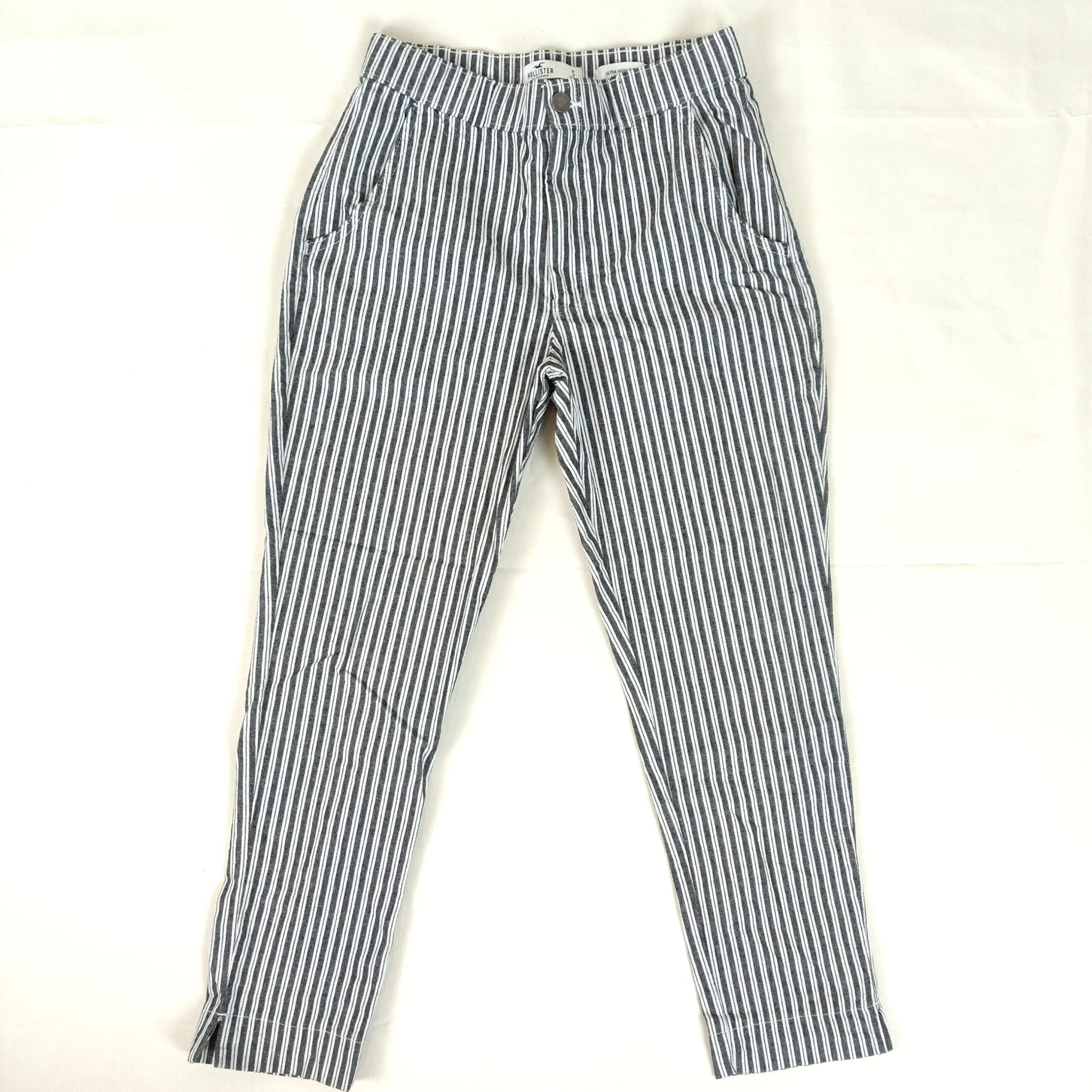 Autres commentaires : 4% élasthanne. Pantalon en toile épaisse à rayures blanches et marines. Poches latérales, deux fausses poches à l’arrière. Taille S.