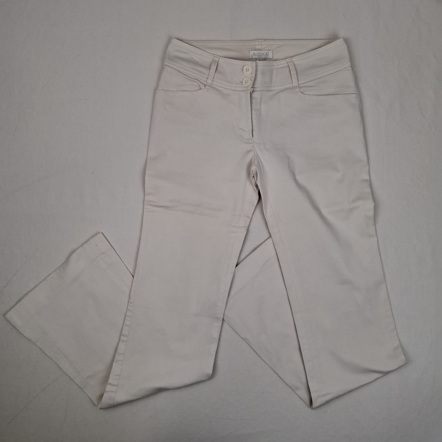Autres commentaires : 3% élasthanne. Pantalon blanc crème uni, fermeture devant par zip et 2 boutons, taille 36.