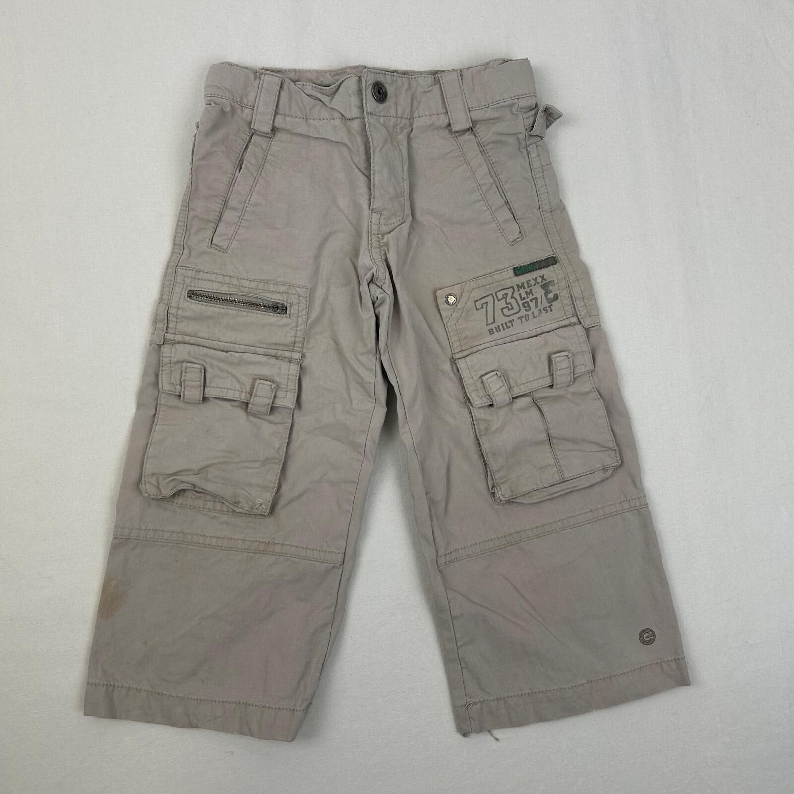 Autres commentaires : Pantalon beige cargo, fermeture par bouton crochet. Petit défaut : le bas du pantalon est légèrement déchiré. Niveau réduit de Fraise à Myrtille.