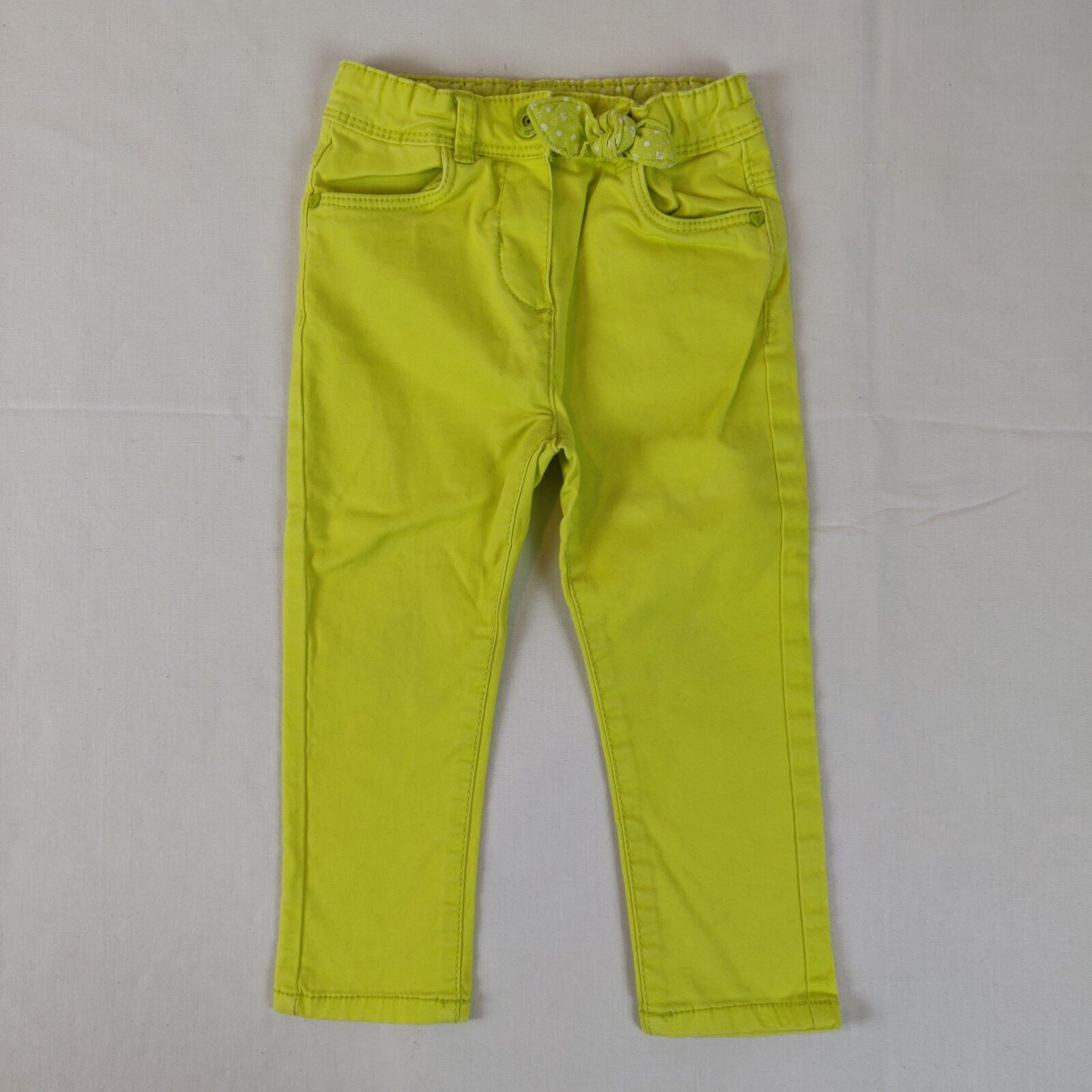 Autres commentaires : Pantalon – vert / jaune vitaminé – taille ajustable. Ouverture centrale à pression. 2 poches latérales et 2 poches arrières. Noeud décoratif à la ceinture. Passants pour une ceinture.