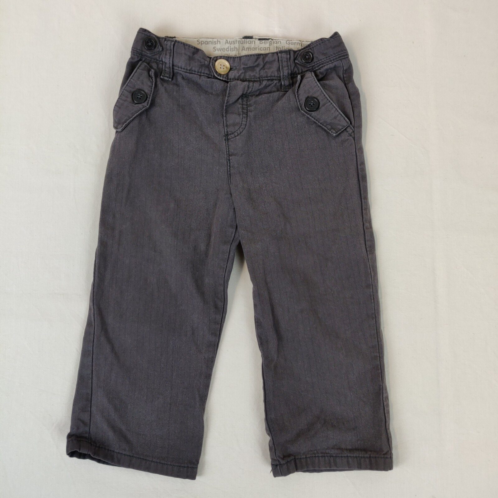 Autres commentaires : Pantalon – gris foncé. Taile ajustable. 2 poches latérales et 2 poches arrières en trompe-l’oeil.