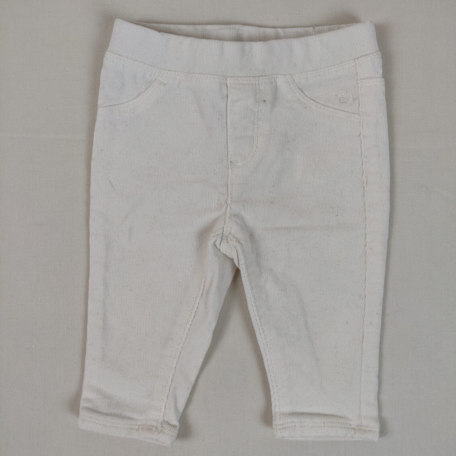 Autres commentaires : 2% élasthanne. Pantlon en velours cotelé blanc. Taille ajustable. 2 poches latérales en trompe-l’oeil et 2 poches arrières.