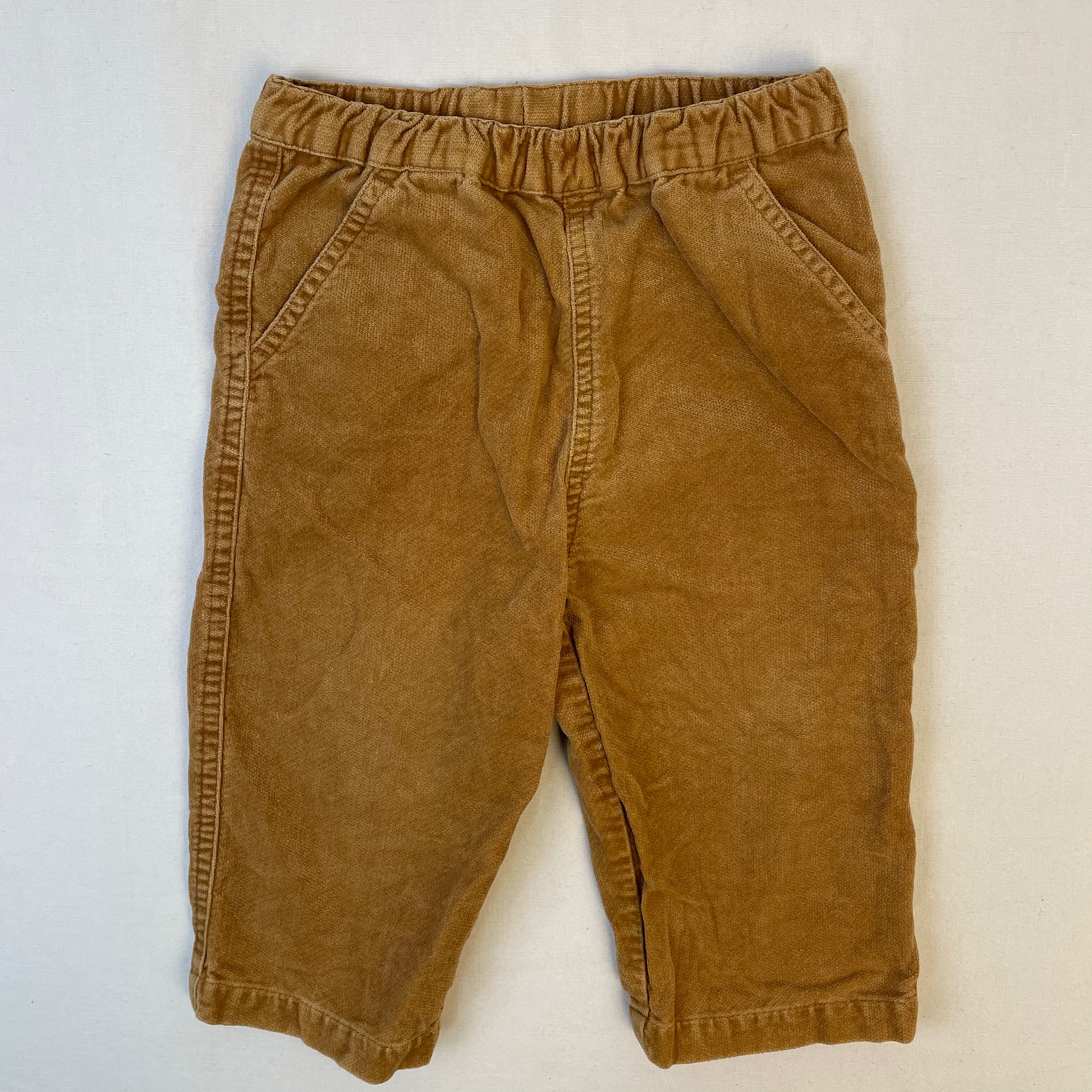 - Pantalon jaune moutarde foncé en velours, taille élastiquée avec 2 poches avant et 2 poches arrière.