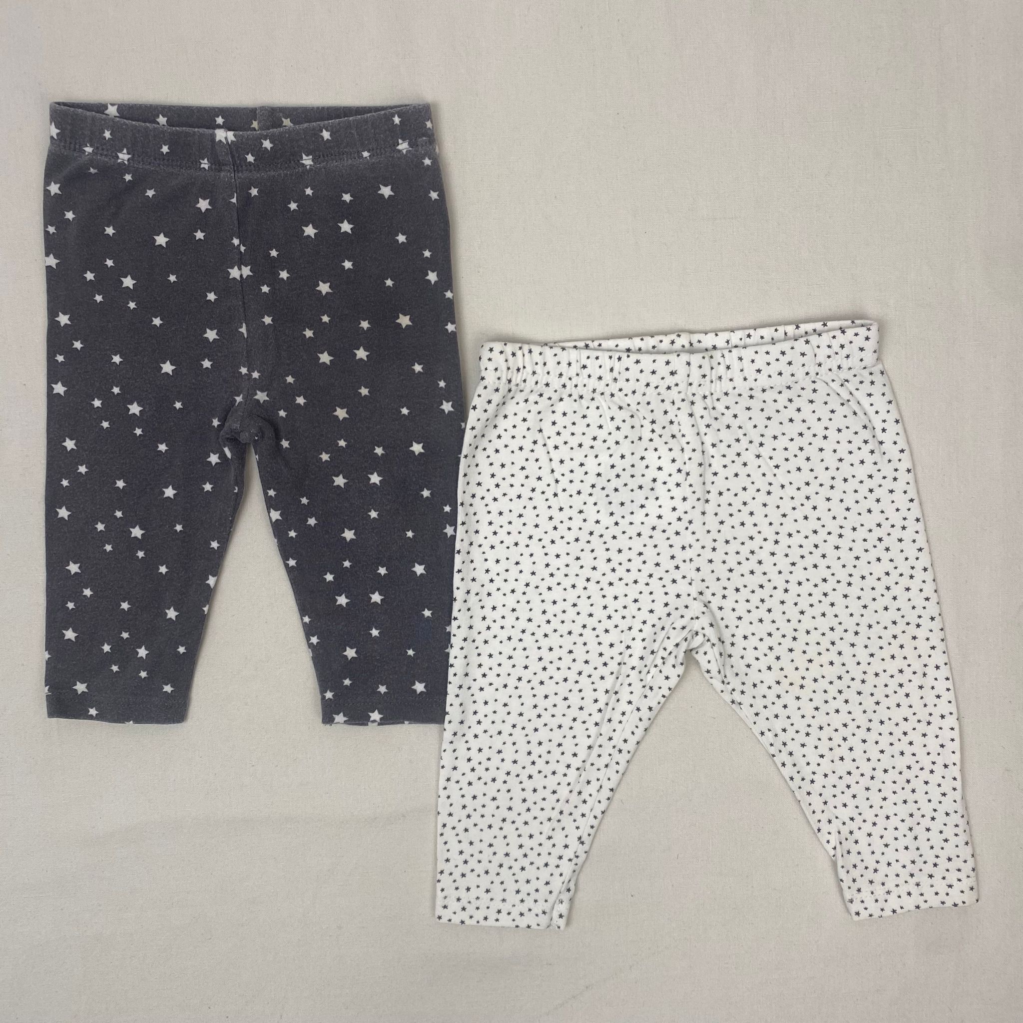 Autres commentaires : 9% élasthanne. Lot de 2 leggings à taille élastiquée parsemés d’étoiles : un gris et un blanc.