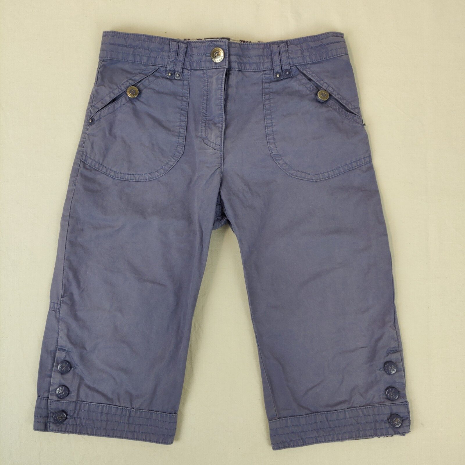 Autres commentaires : Pantacourt – parme. Taille ajustable. 2 poches latérales et 2 poches arrières décorées d’un liseré de dentelle parme. Ouverture au niveau du bas de la jambe à 3 boutons.