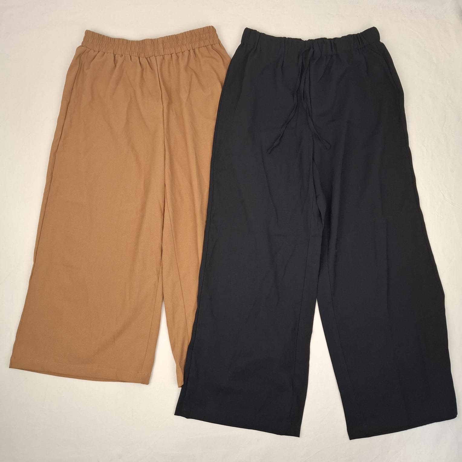 Autres commentaires : Lot de 2 pantalons, taille élastiquée : – Un noir et un marron.