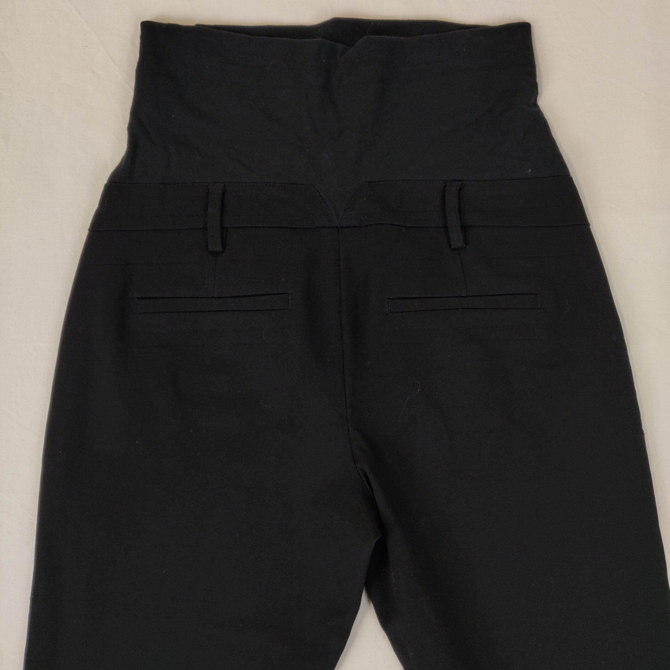 Autres commentaires : Pantalon noir de grossesse , coupe droite, taille haute avec des poches , contient de l’élasthane.