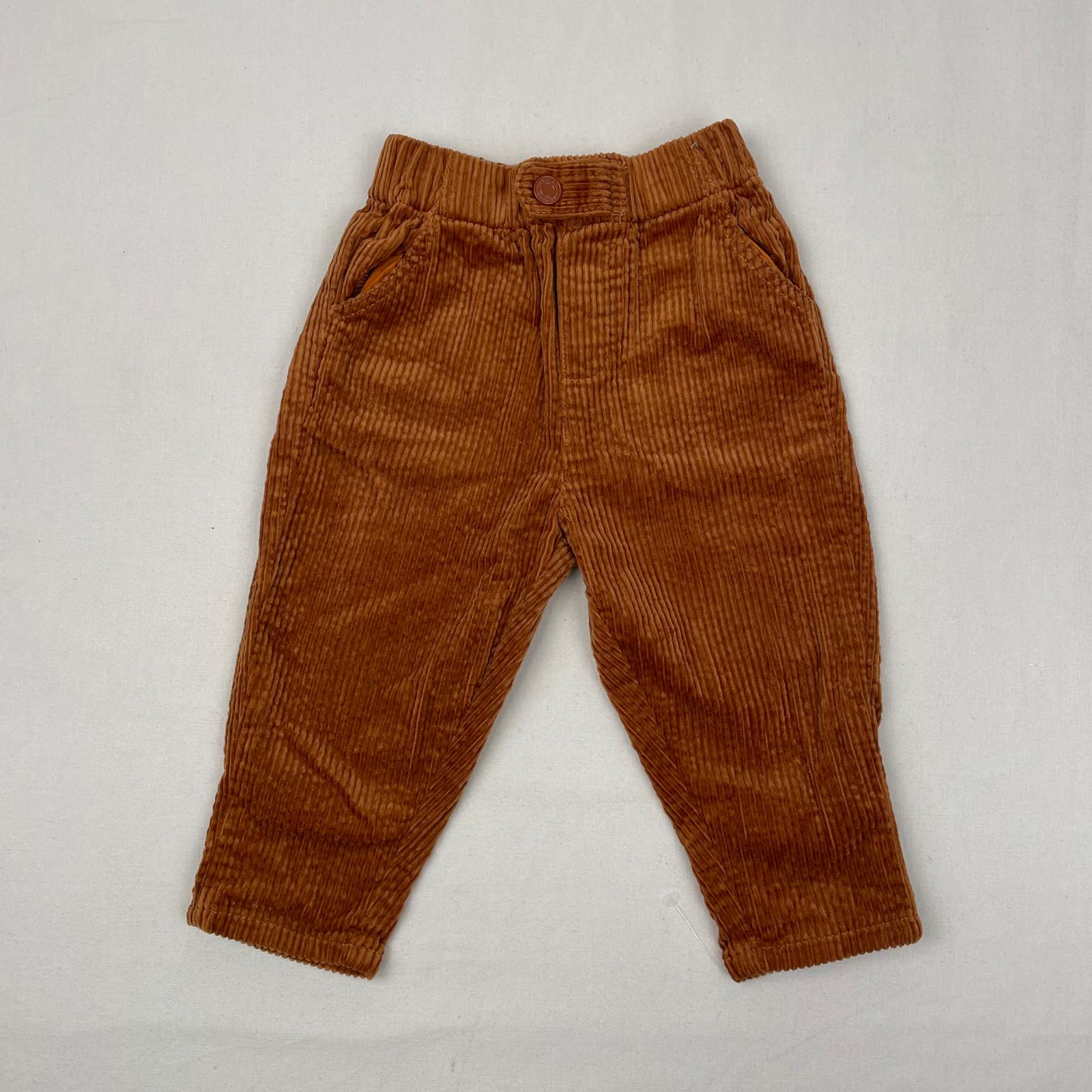 Autres commentaires : Pantalon droit en velours côtelé marron, taille élastiquée.