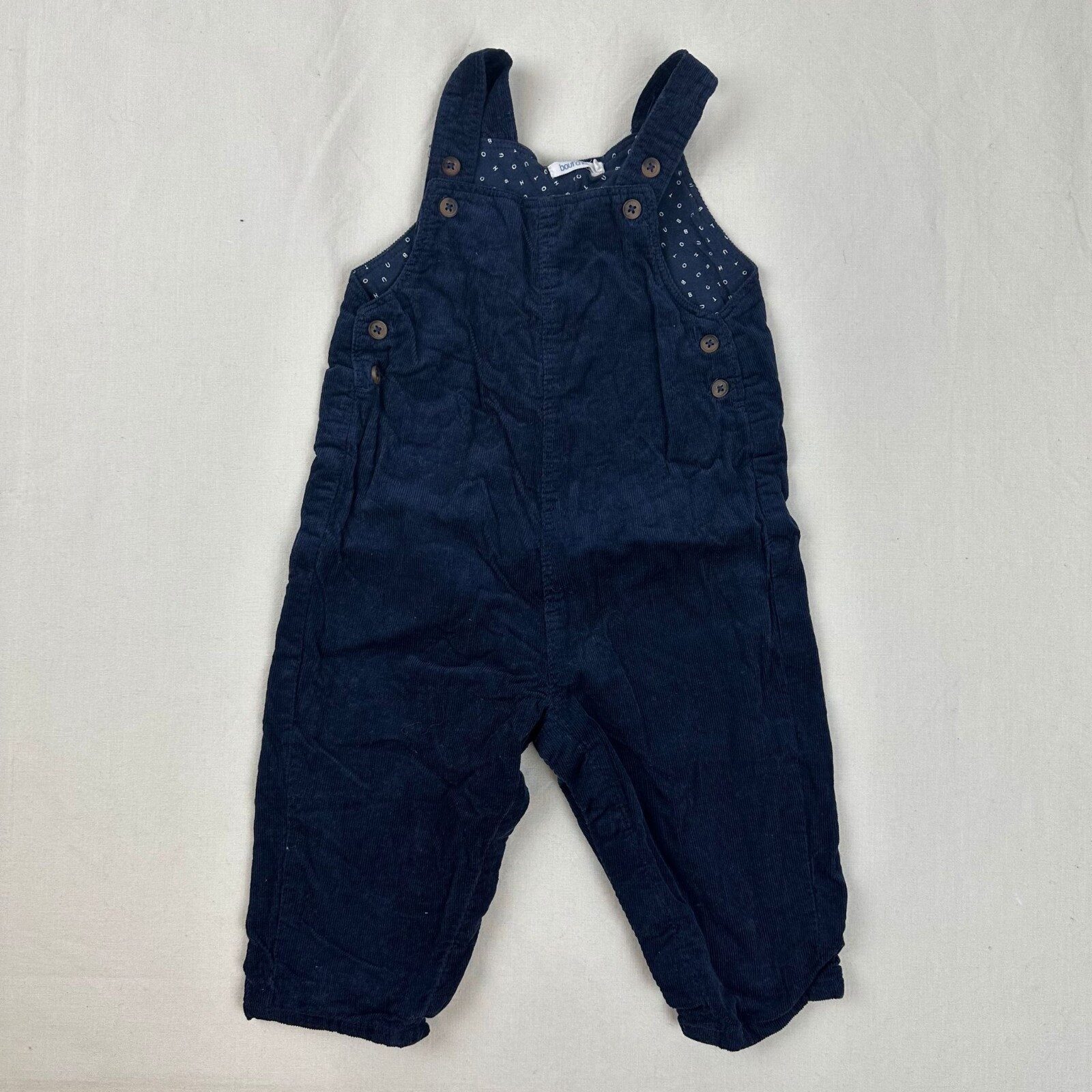 Autres commentaires : Salopette bleu foncé en bretelles avec une fermeture latérales sur les deux côtés.