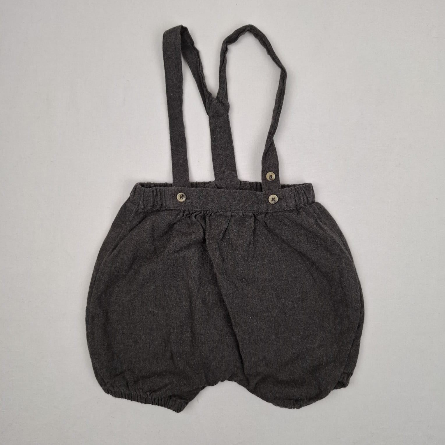 Autres commentaires : Salopette grise, attache des bretelles avec des boutons, taille élastiqué