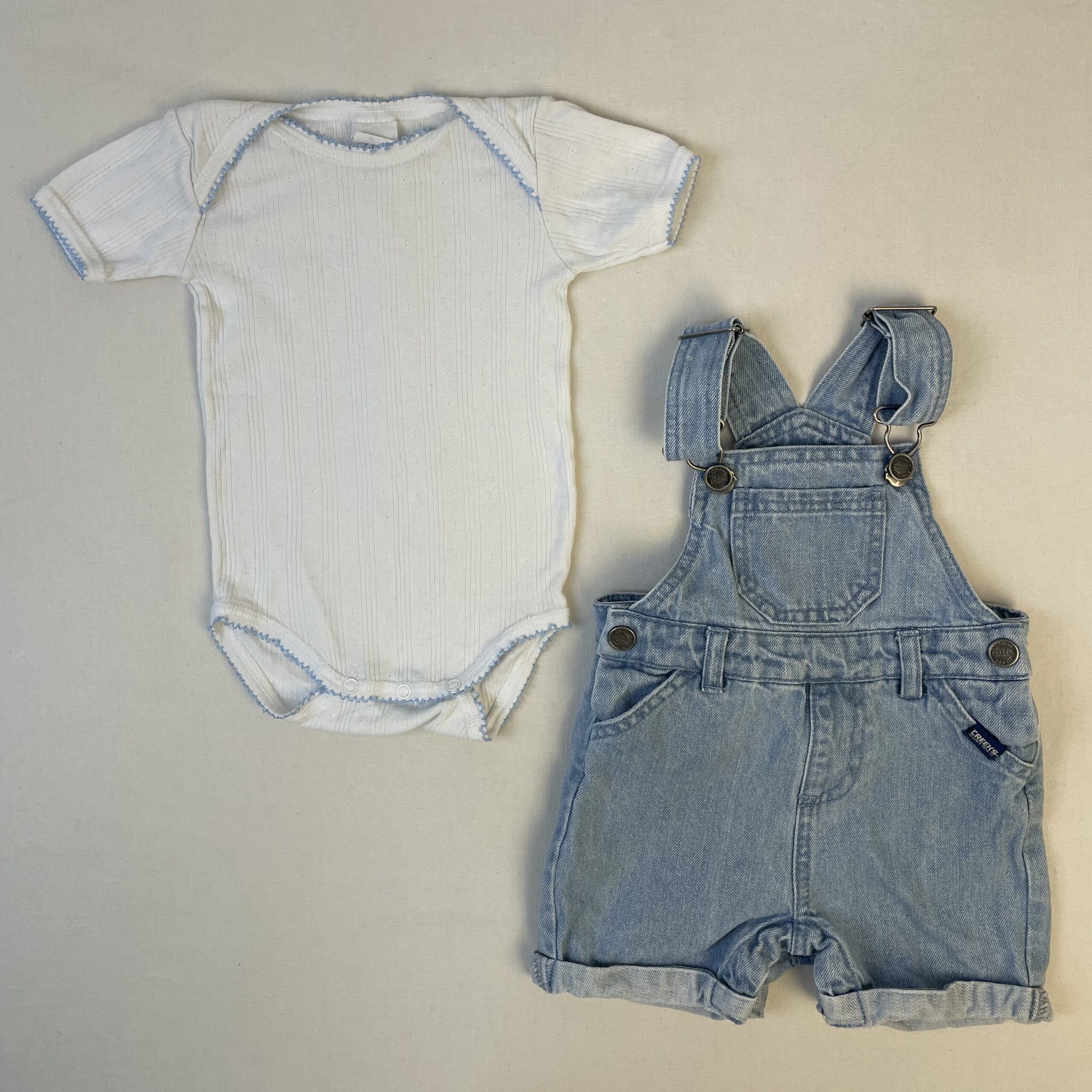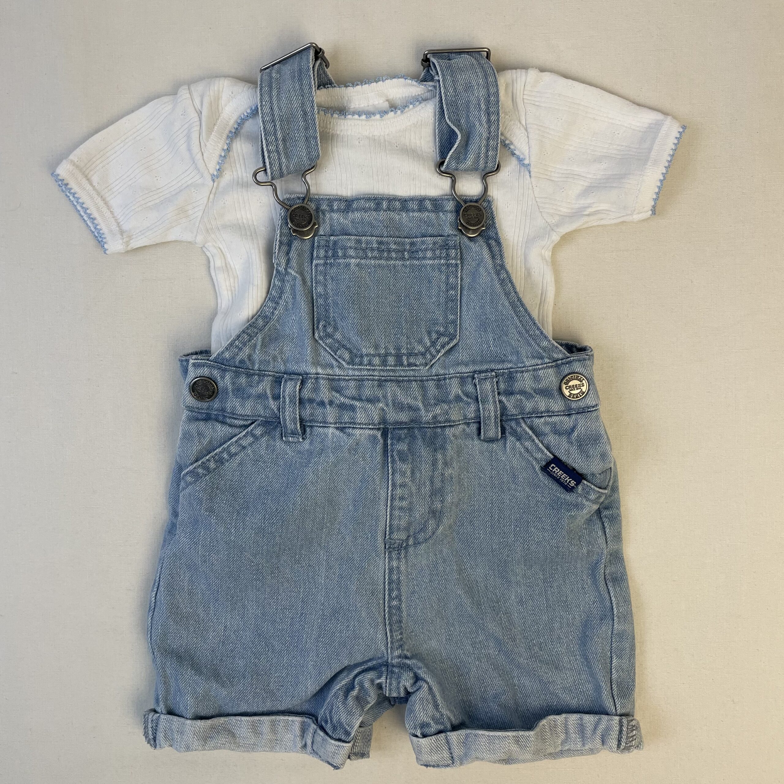 - Salopette Creeks bleu ciel avec un body blanc offert.