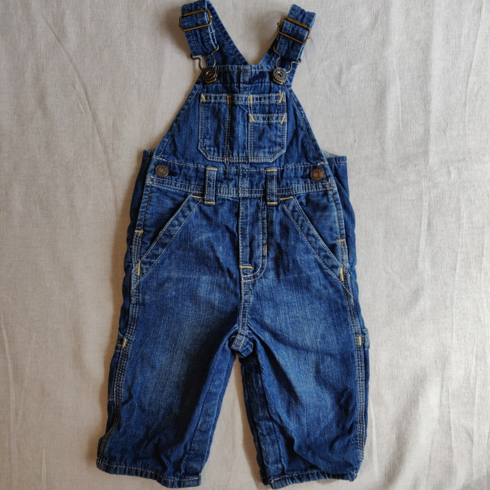 Autres commentaires : Salopette denim coton, doublure jersey 65% polyester. Hauteur réglable par crochets, fermeture par boutons pression sur les côtés et à l’entrejambe.