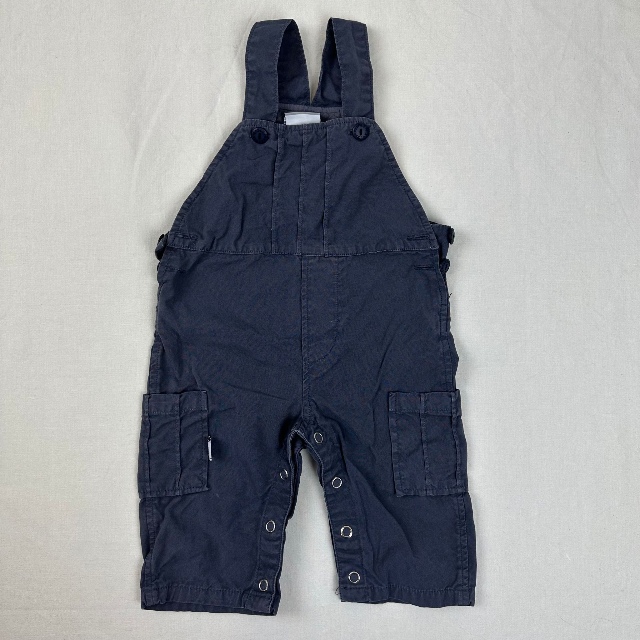 Autres commentaires : Salopette bleue à bretelles, en toile de coton, avec fermeture par boutons sur les côtés.