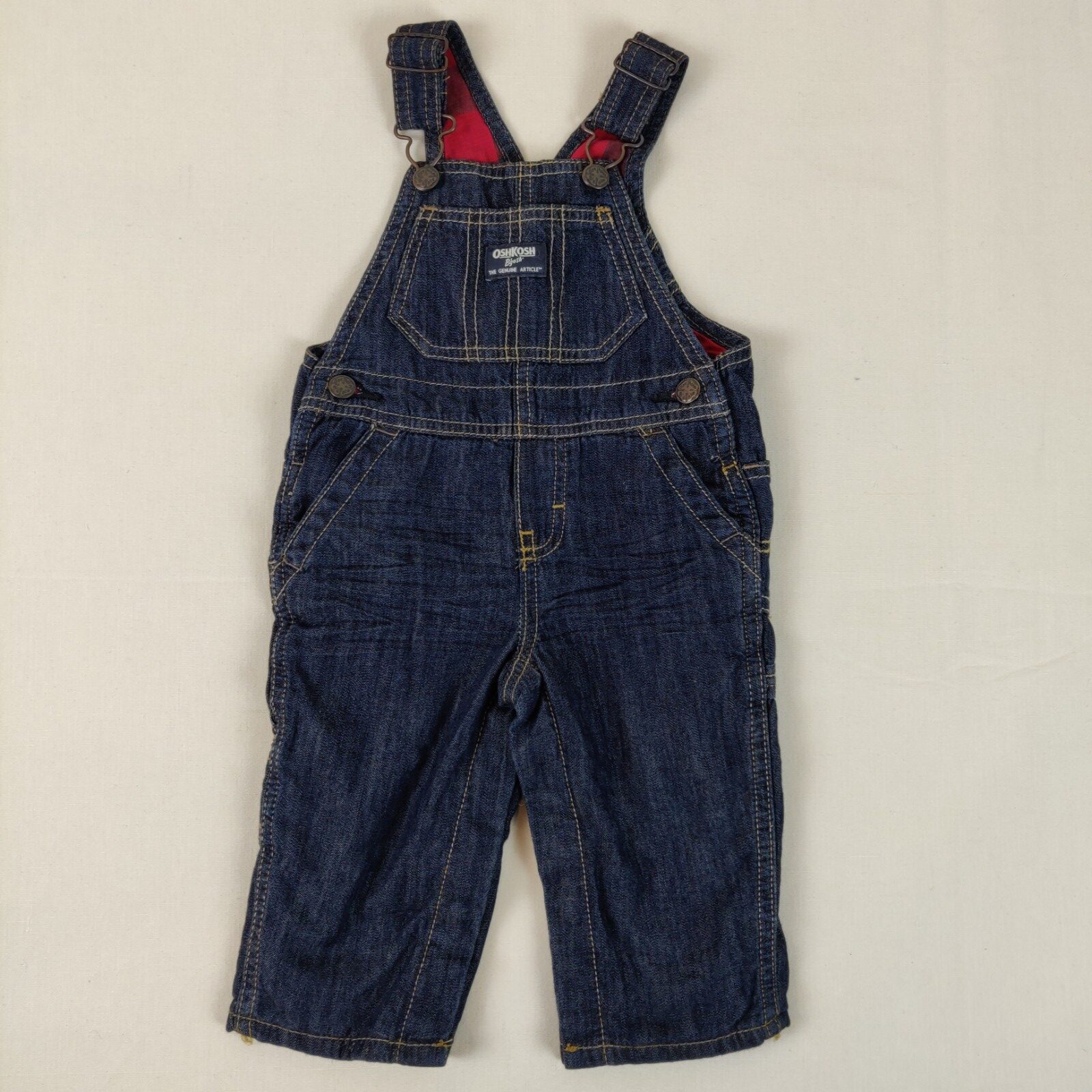 Autres commentaires : Salopette à bretetelles réglables avec des boucles – en denim bleu foncé. Pochette centrale avec écusson griffe de la marque. Coutures marrons apparentes. Ouvertures latérales à un bouton. 2 poches latérales et 2 poches arrières. Ecusson triangulaire de la marque au dos sous la base des bretelles. Ouverture à l’entrejambe à pressions.