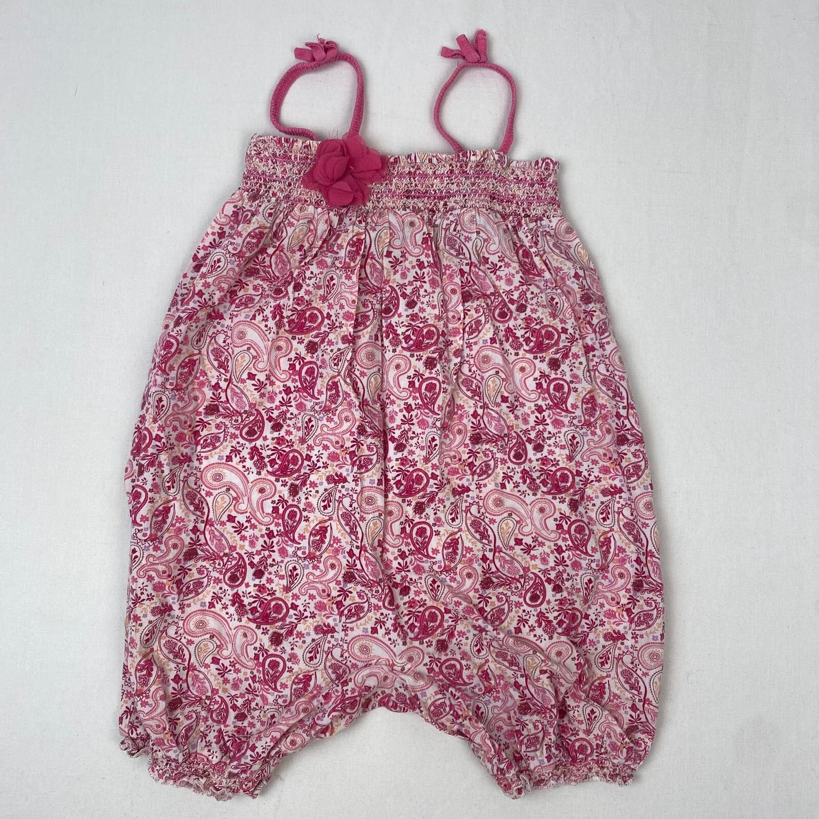 Autres commentaires : Salopette avec des motifs de fleurs, taille élastique, fermeture par boutons pressions