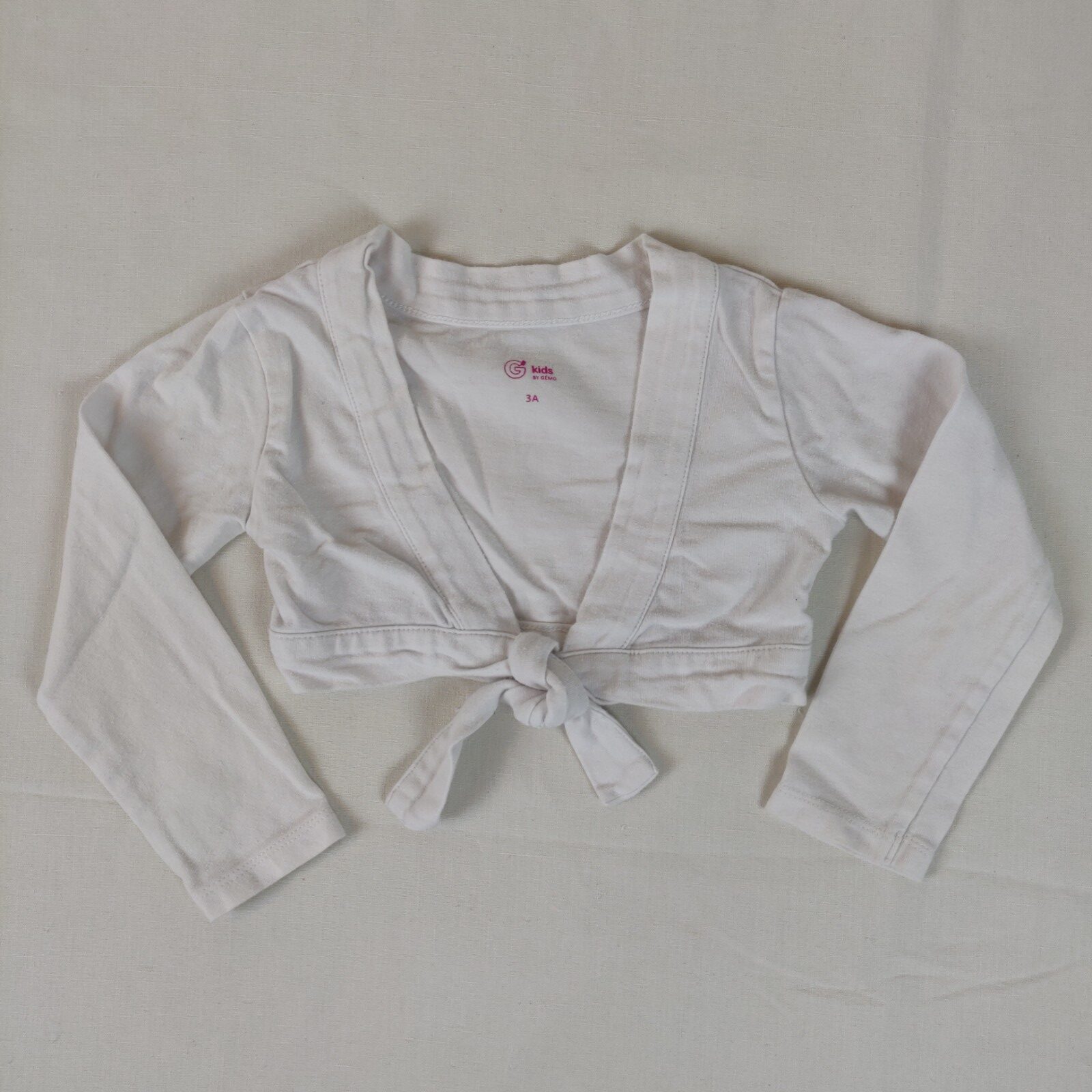 Autres commentaires : 5% élasthanne. Boléro uni blanc, bon état, quelques bouloches d’usage.