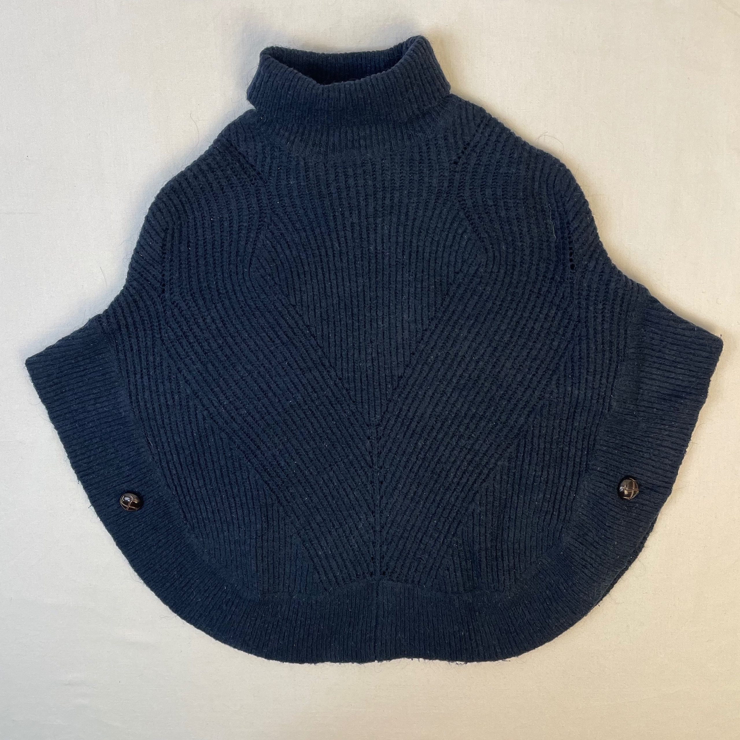- Cape poncho en tricot bleu foncé, col roulé
