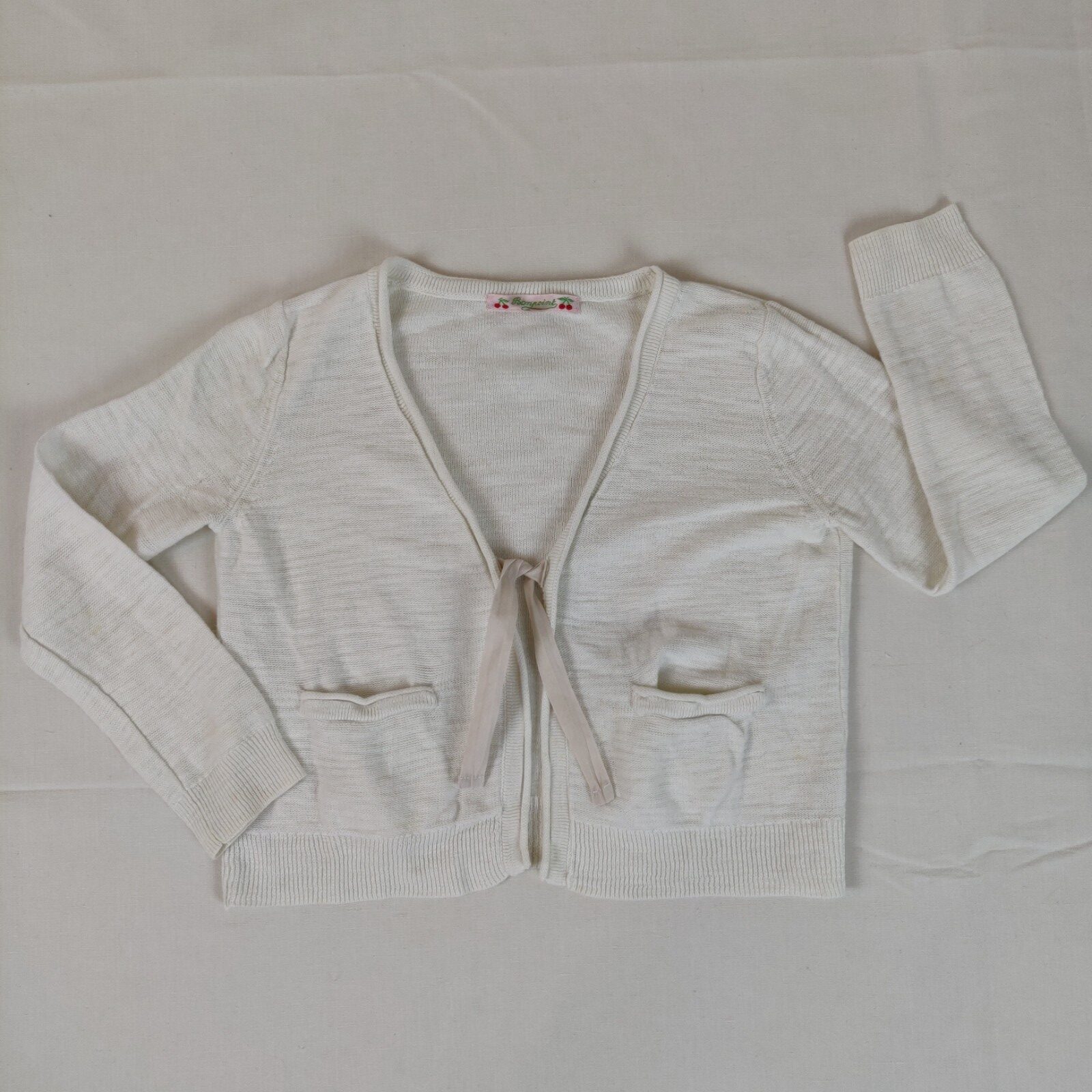 Autres commentaires : 45% coton. Gilet – écru. Le Gilet se ferme centralement à l’aide de 2 rubans se nouant. 2 poches latérales. 2 petites tâches très discrètes se fondant à la couleur à l’arrière de la manche droite.