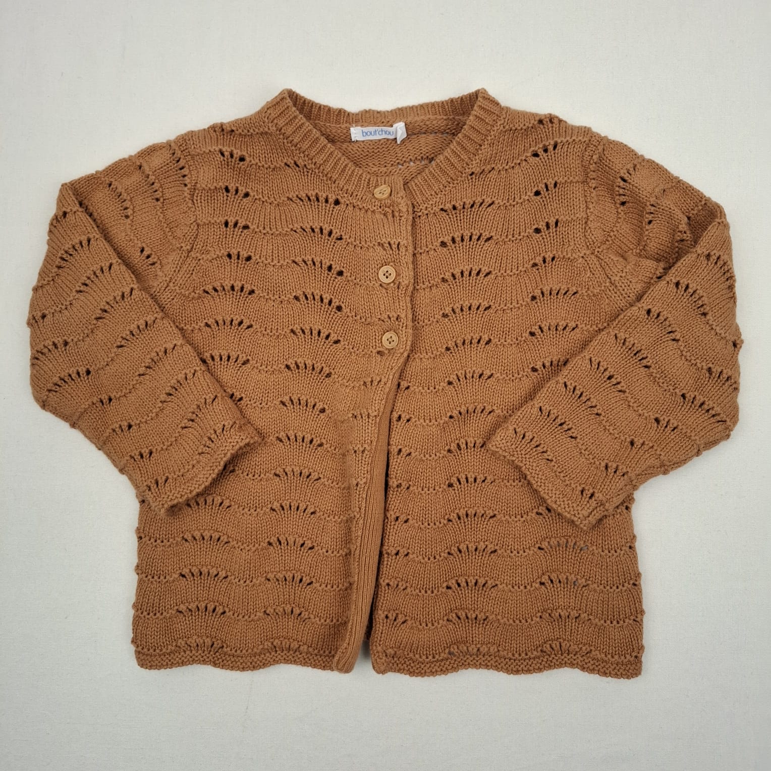 Autres commentaires : Gilet en maille marron, manches longues, fermeture par boutons, col rond