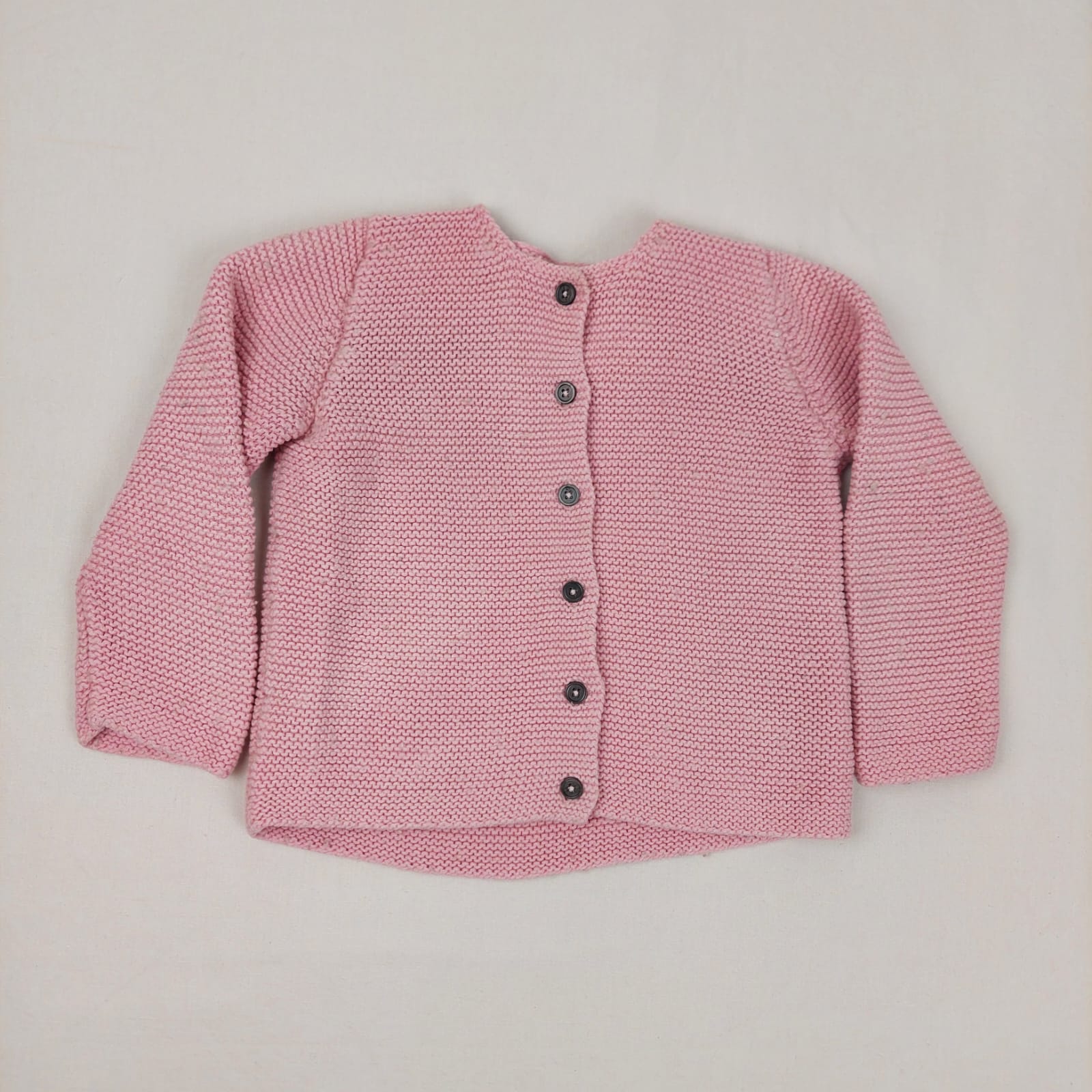 Autres commentaires : 15% laine. Cardigan rose en point mousse