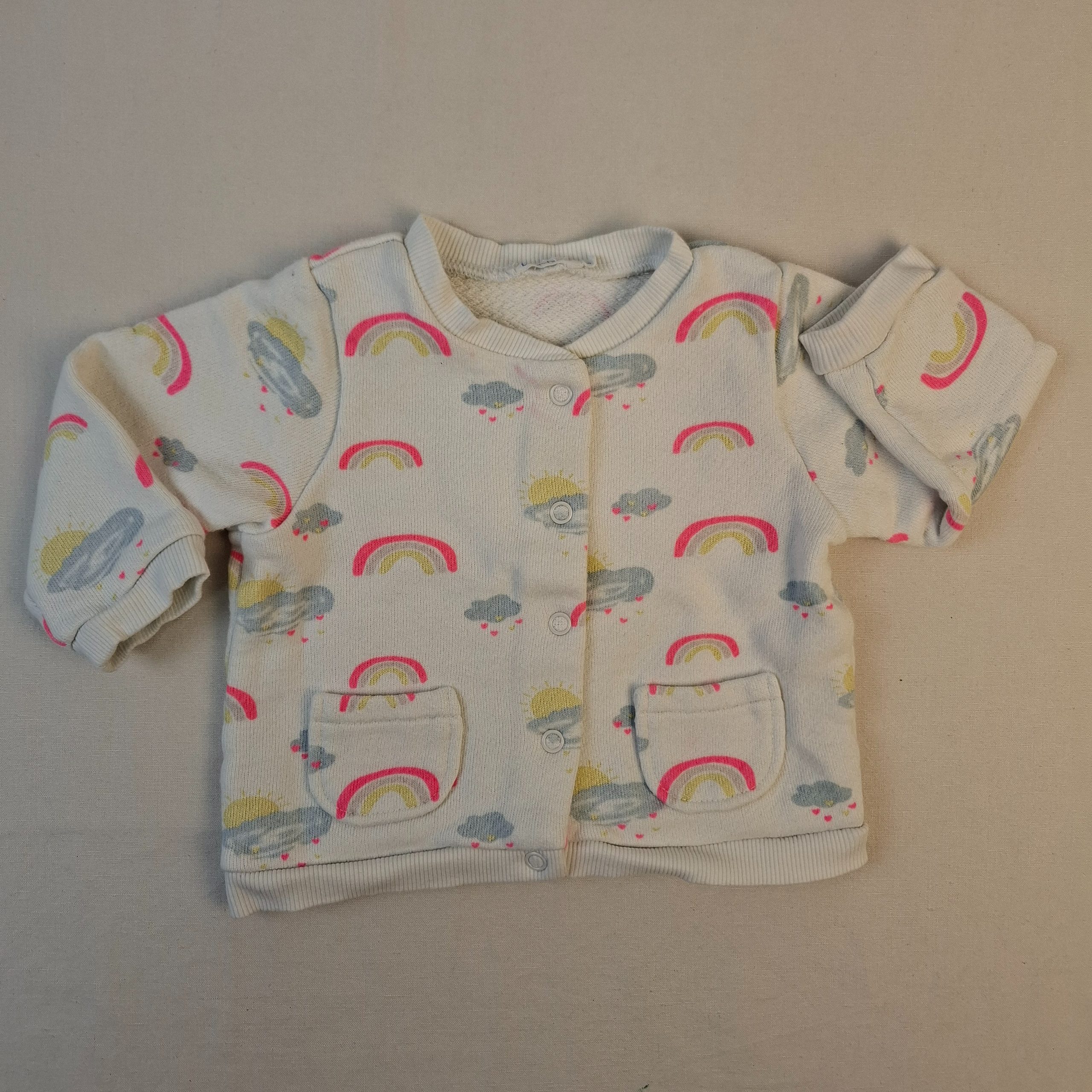 - Col rond, fermeture par boutons pression, motif arc -de -ciel.