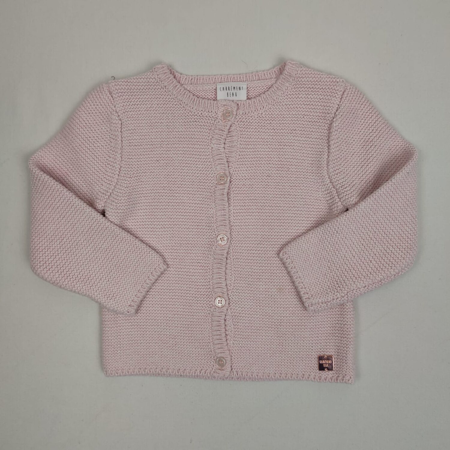 Autres commentaires : 24% polyester. Gilet manches longues tricoté en point mousse, mini plaque rose dorée avec la marque, fermeture devant par boutons.