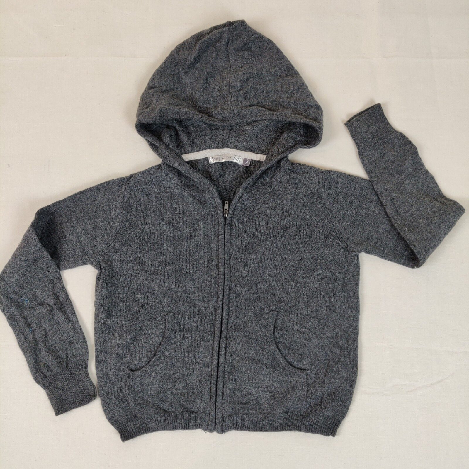Autres commentaires : 20% polyamide, 22% viscose, 10% angora, 5% cachemire. Gilet à capuche en fines mailles – gris. Ouverture centrale à zip. 2 poches latérales.