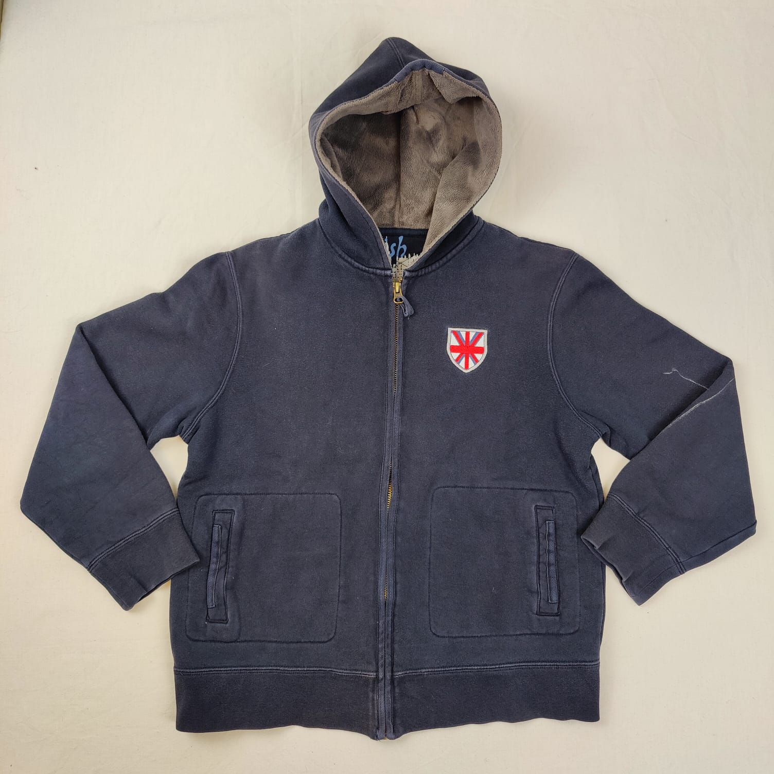 Autres commentaires : Gilet zip à capuche, poche avant, blason, doublure polaire