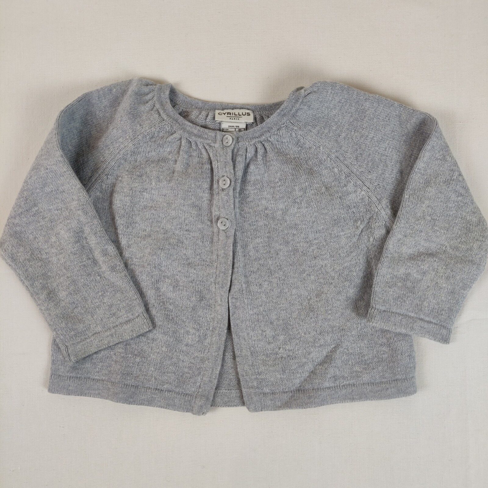 Autres commentaires : 15% laine. Gilet à fines mailles – girs. Ouverture centrale à 3 boutons. Léger effet pelucheux en particulier au dos du vêtement.
