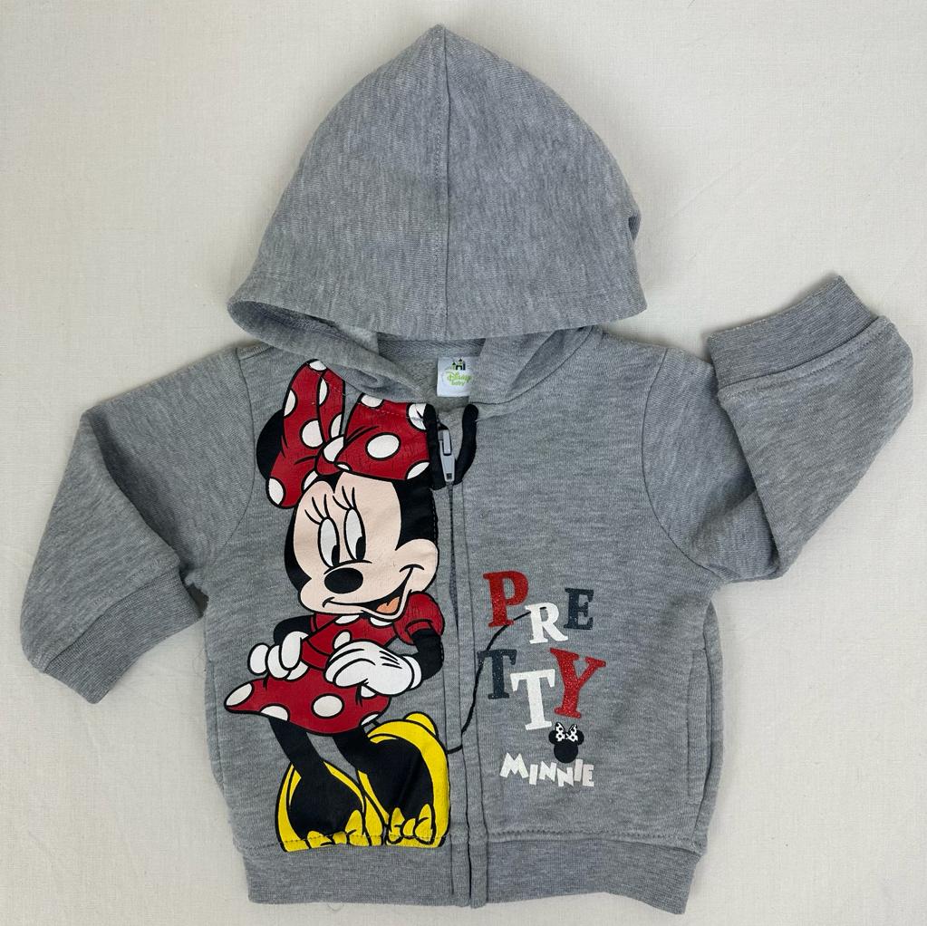Autres commentaires : Gilet gris manches longues avec capuche, fermeture en zip et comme motif Minnie Mouse.