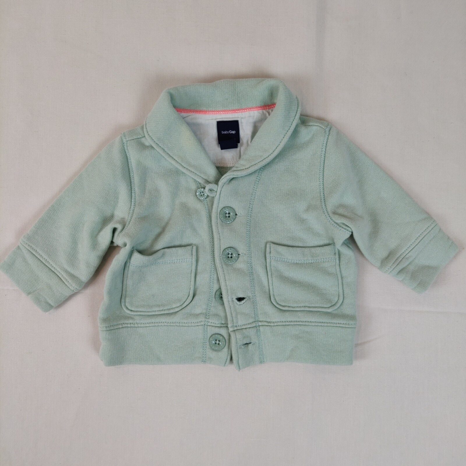 Autres commentaires : Gilet à mi chemin avec une veste – vert – ouverture centrale à boutons classiques. Col. 2 poches latérales. Très discrète tâche à l’avant du bas du vêtement.