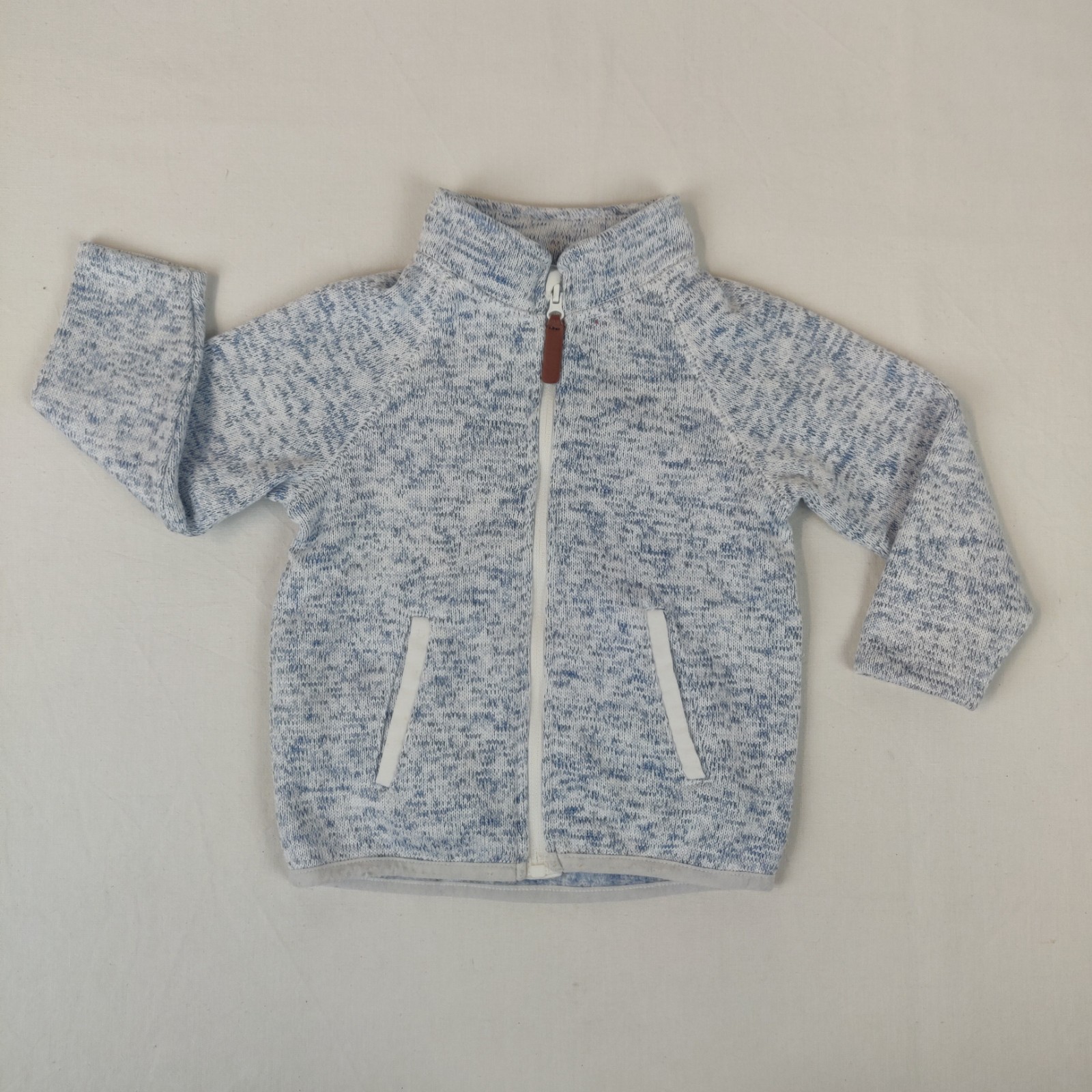 Autres commentaires : Gilet blanc et bleu avec fermeture éclair à l’avant et 2 poches.