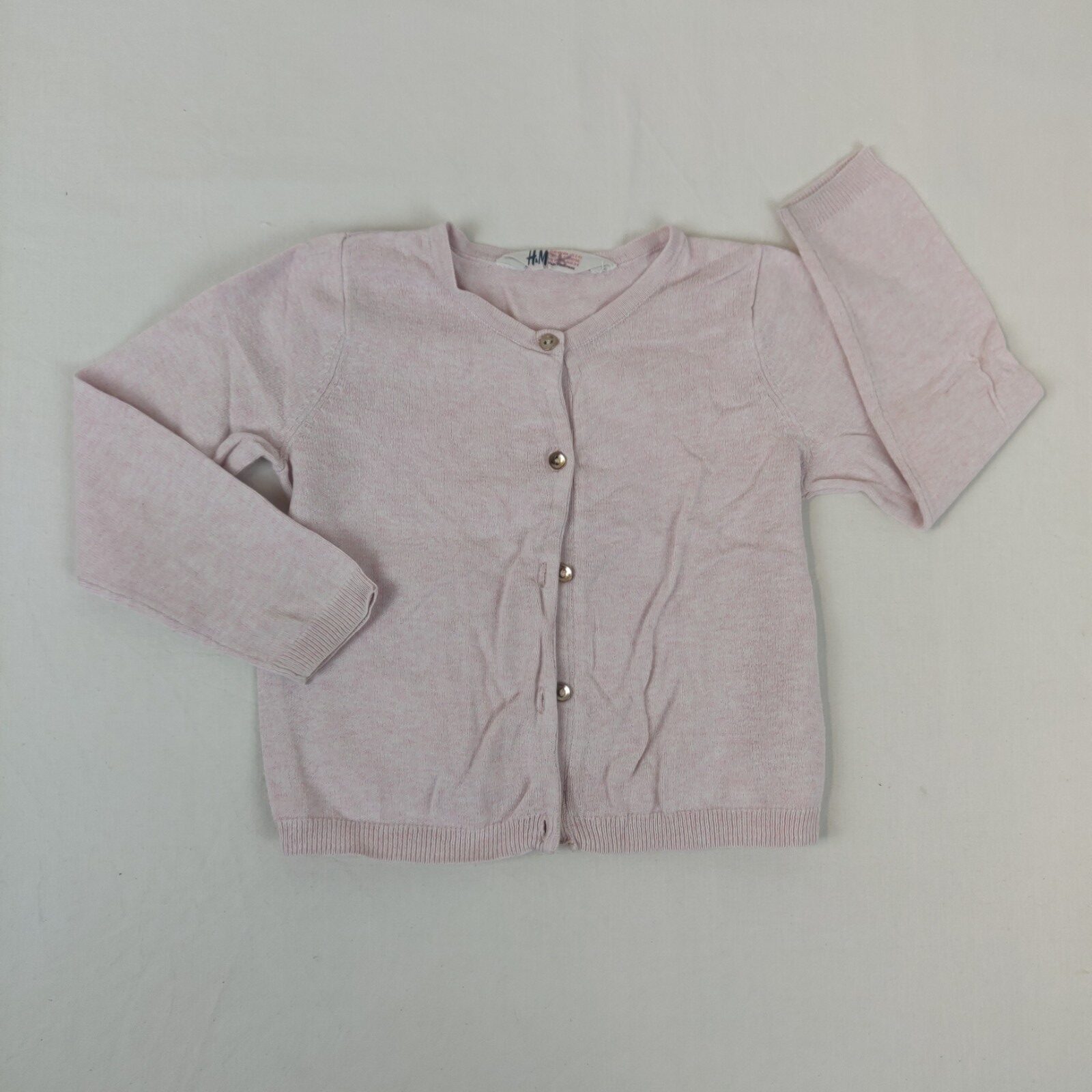Autres commentaires : Gilet en fines mailles rose chiné. Ouverture centrale à boutons. Trou sous le bras gauche reprisé.