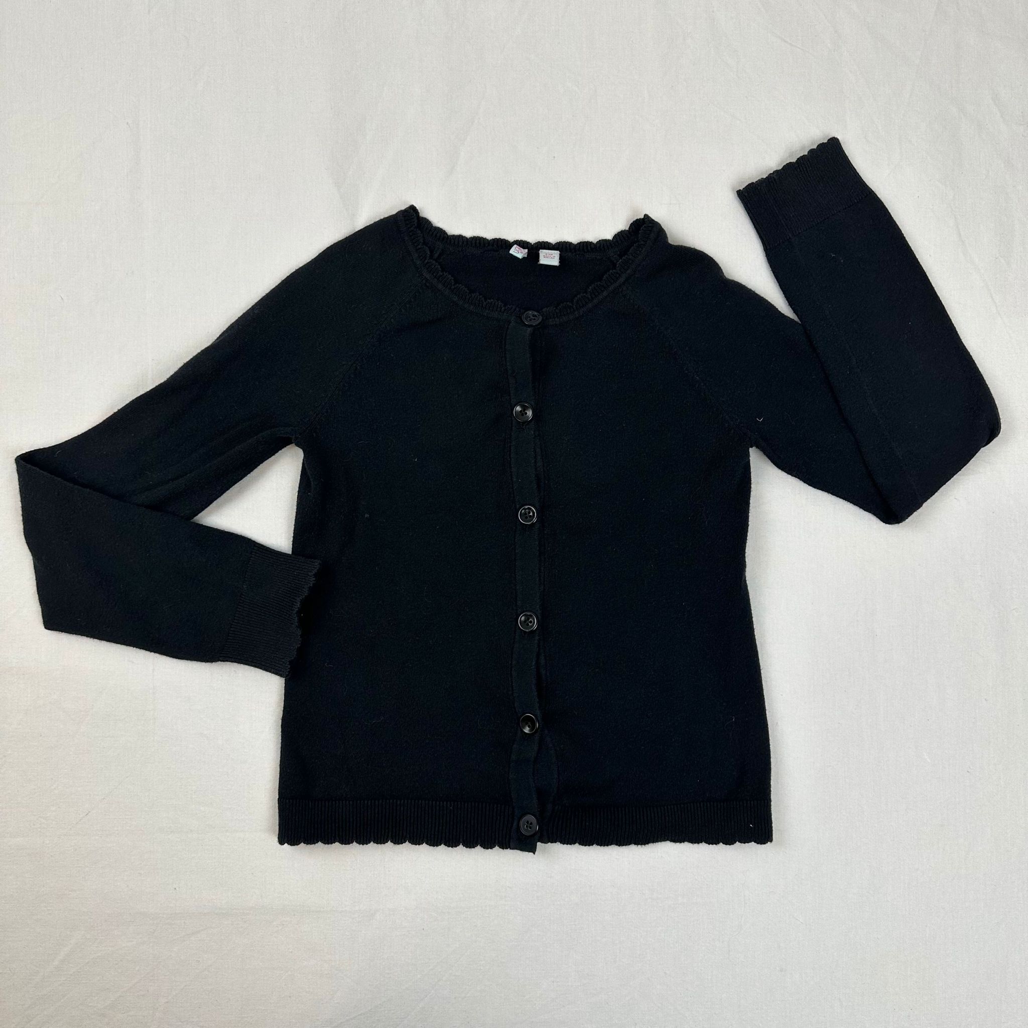 Autres commentaires : Gilet manches longues noir avec une fermeture devant par boutons.